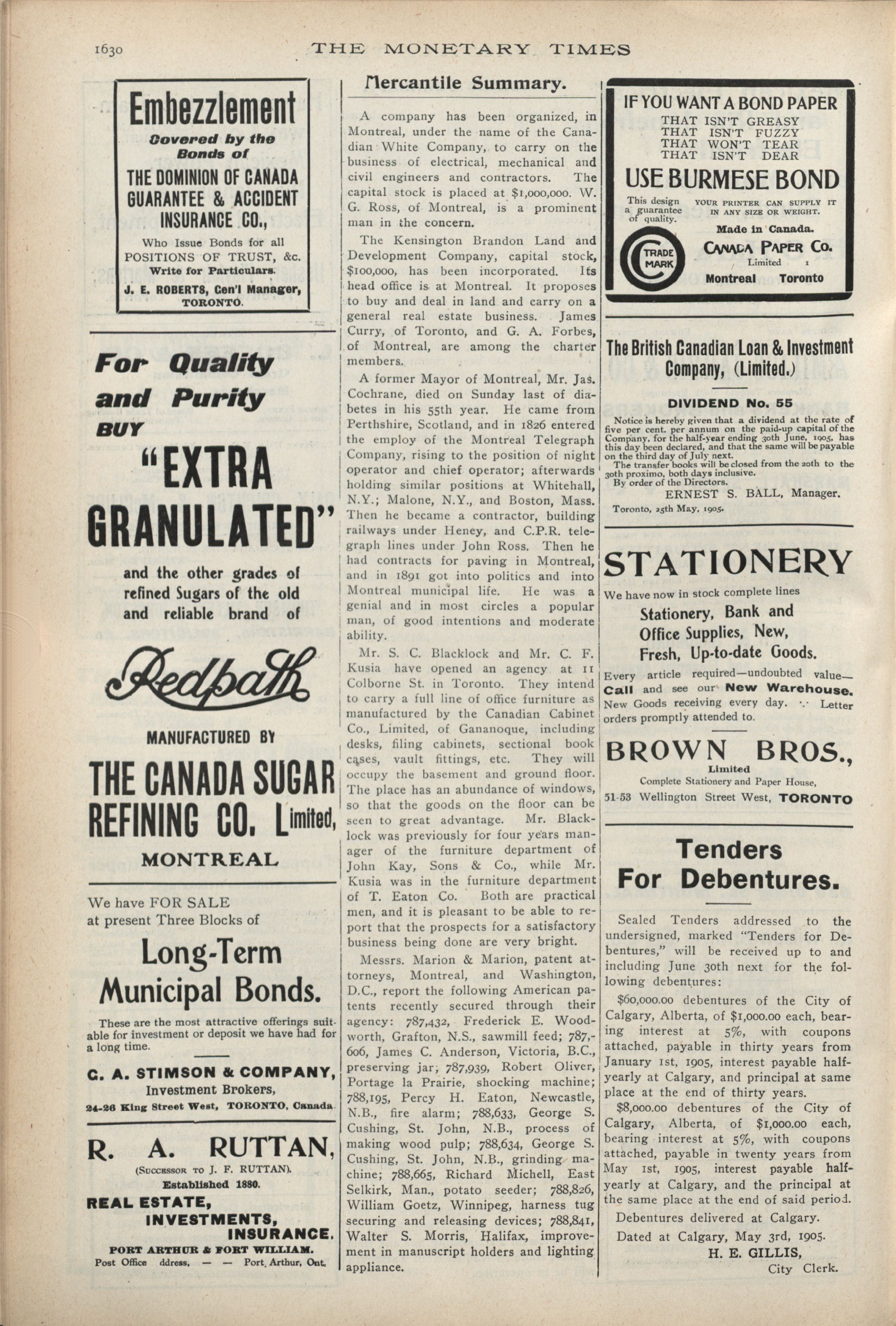 - The Monetary Times, trade review and insurance chronicle. : 38th Year No. 49. (June 2, 1905)