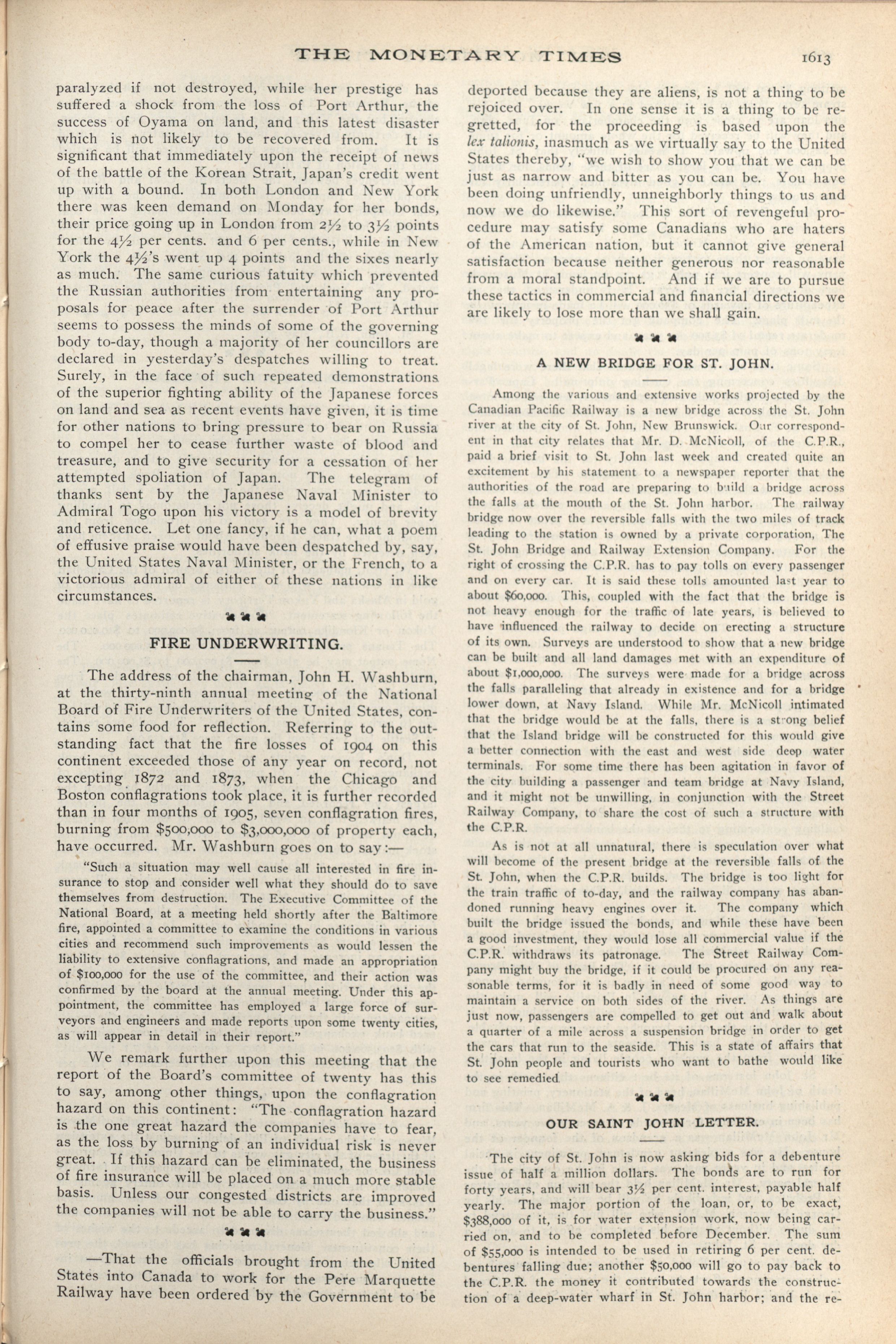 - The Monetary Times, trade review and insurance chronicle. : 38th Year No. 49. (June 2, 1905)