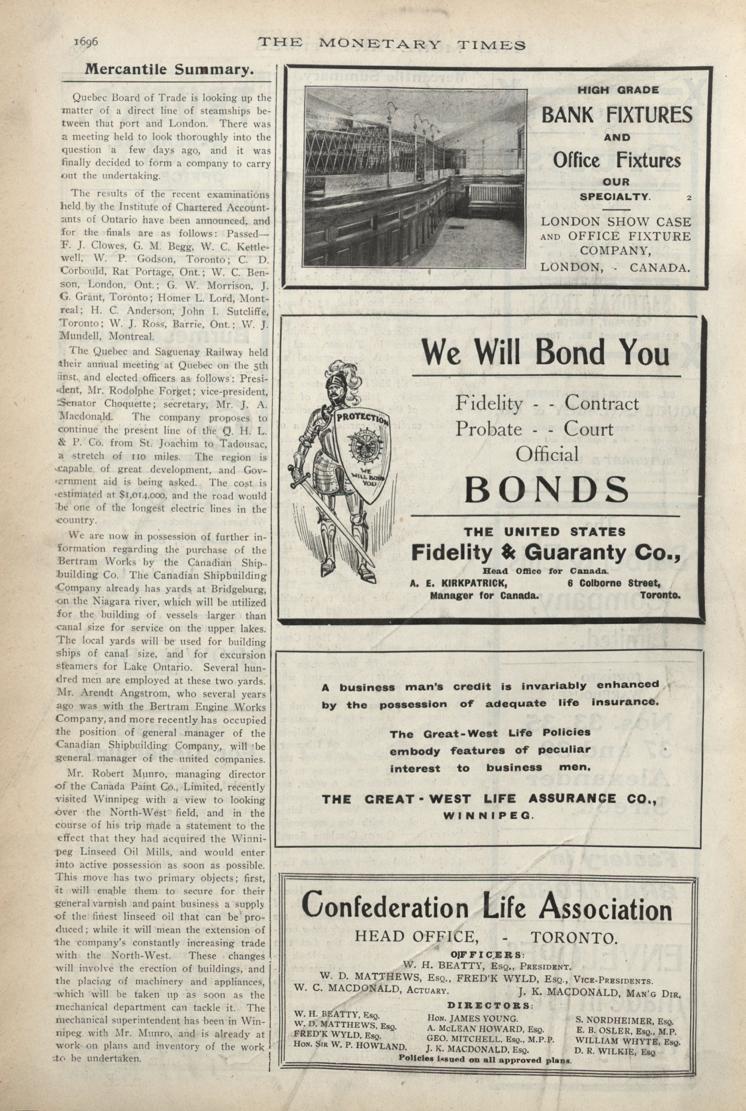 - The Monetary Times, trade review and insurance chronicle. : 38th Year No. 51. (June 16, 1905)