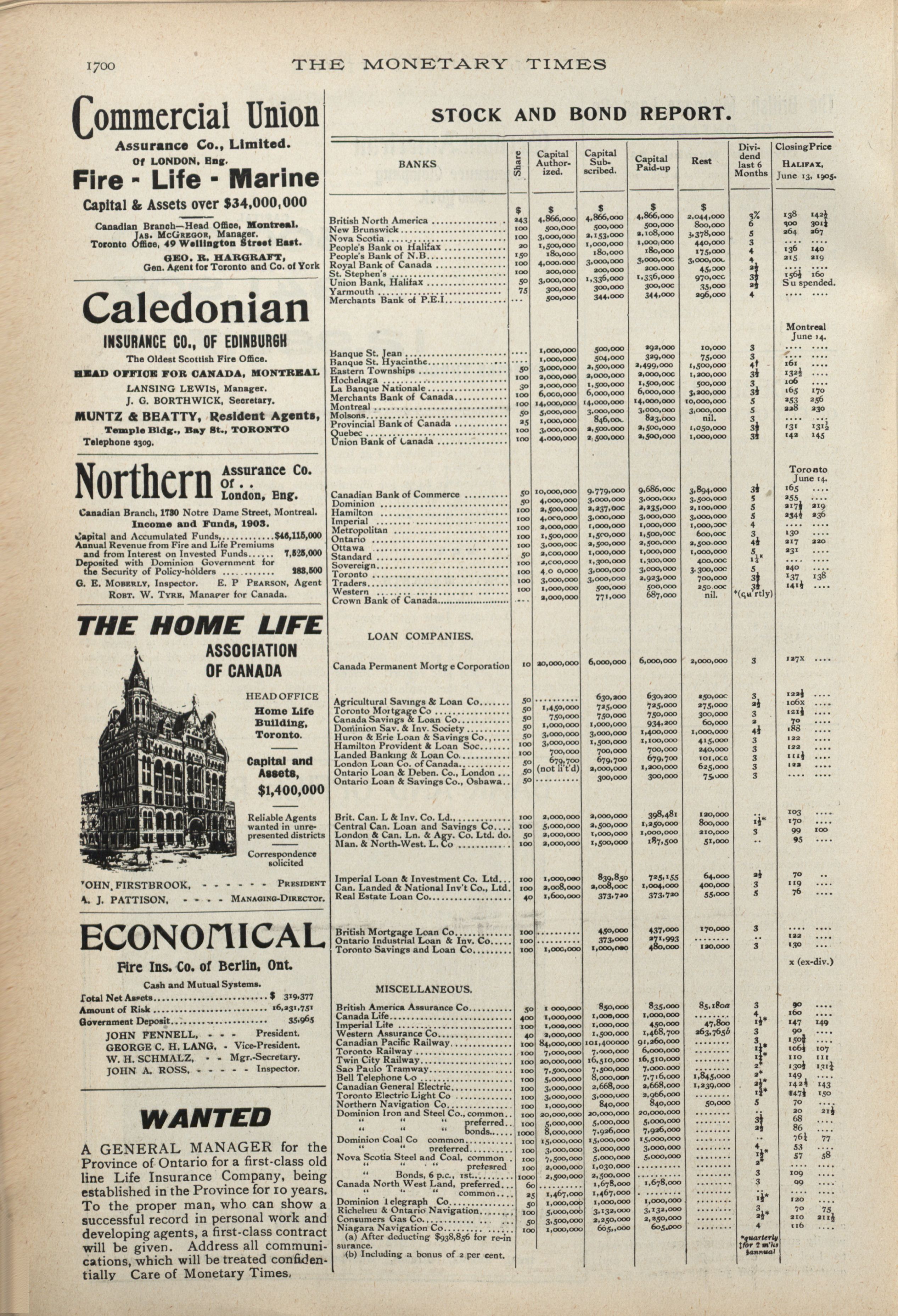 - The Monetary Times, trade review and insurance chronicle. : 38th Year No. 51. (June 16, 1905)