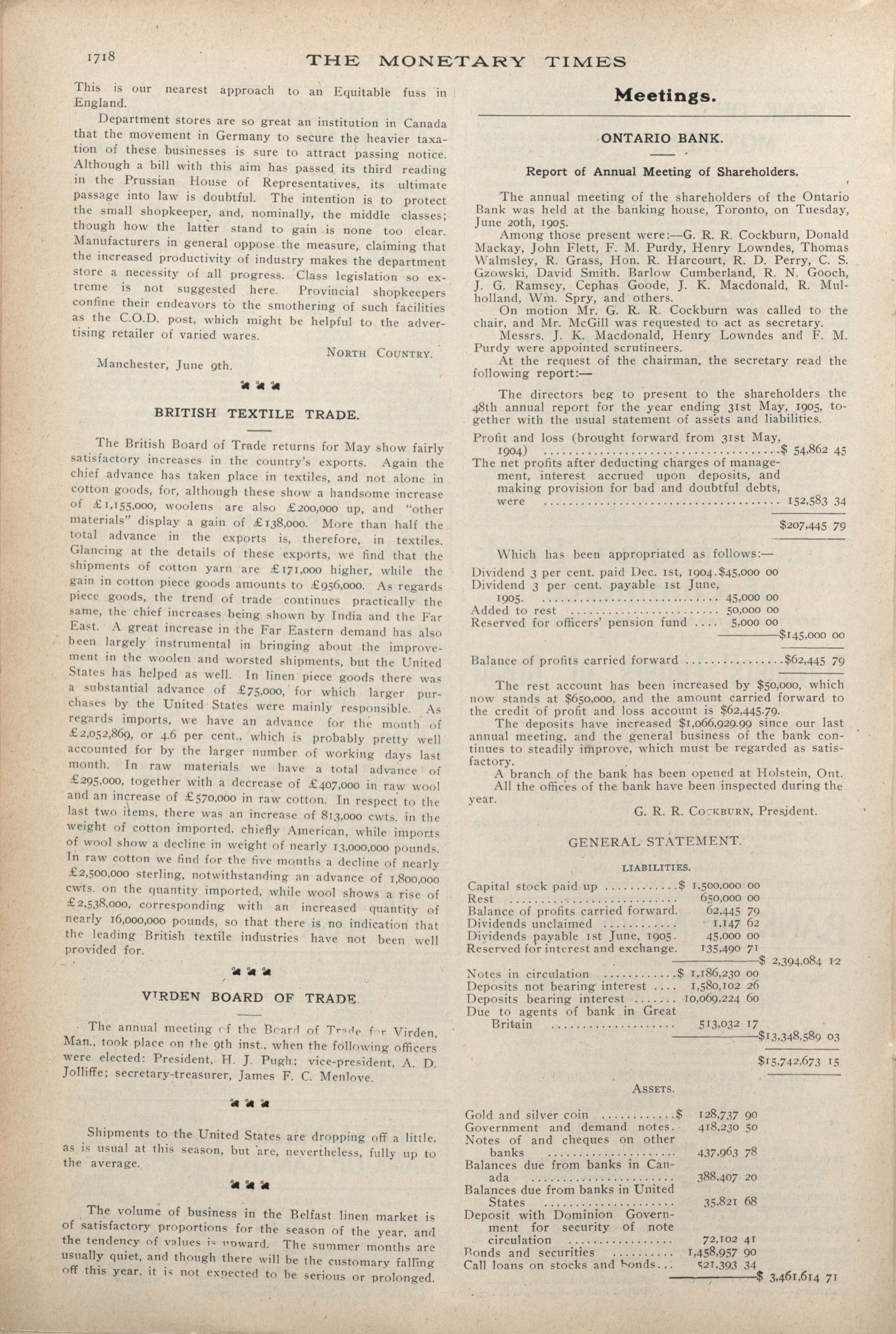 - The Monetary Times, trade review and insurance chronicle. : 38th Year No. 52. (June 23, 1905)
