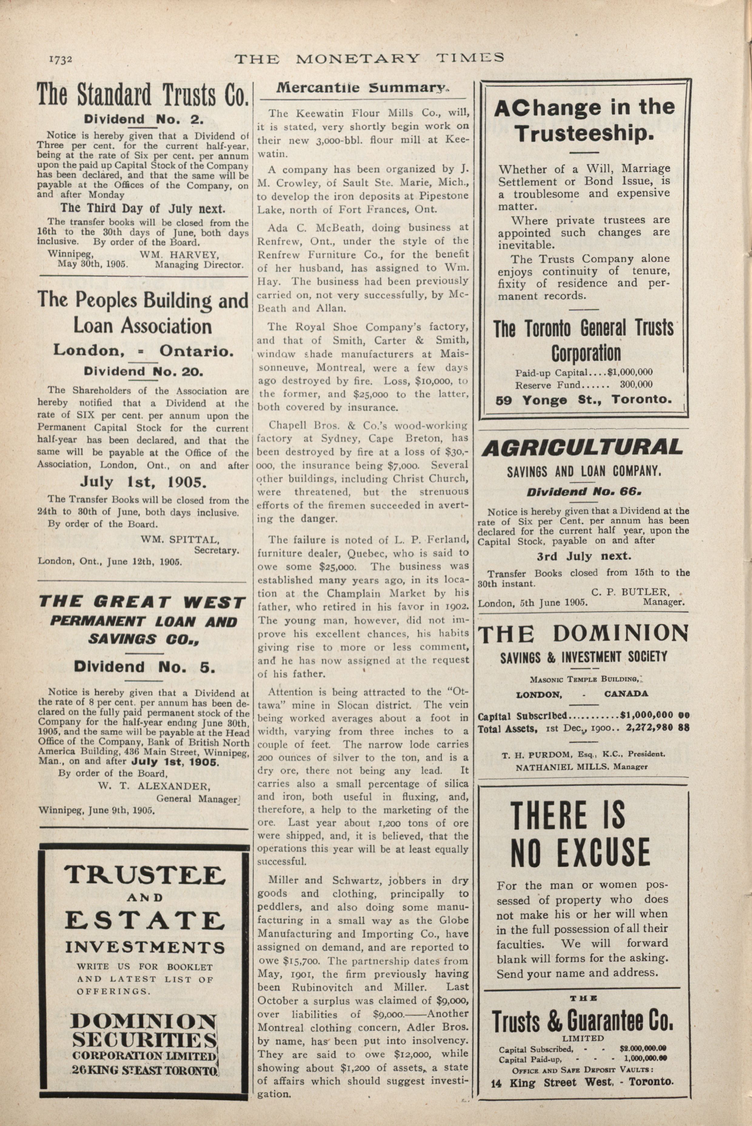 - The Monetary Times, trade review and insurance chronicle. : 38th Year No. 52. (June 23, 1905)