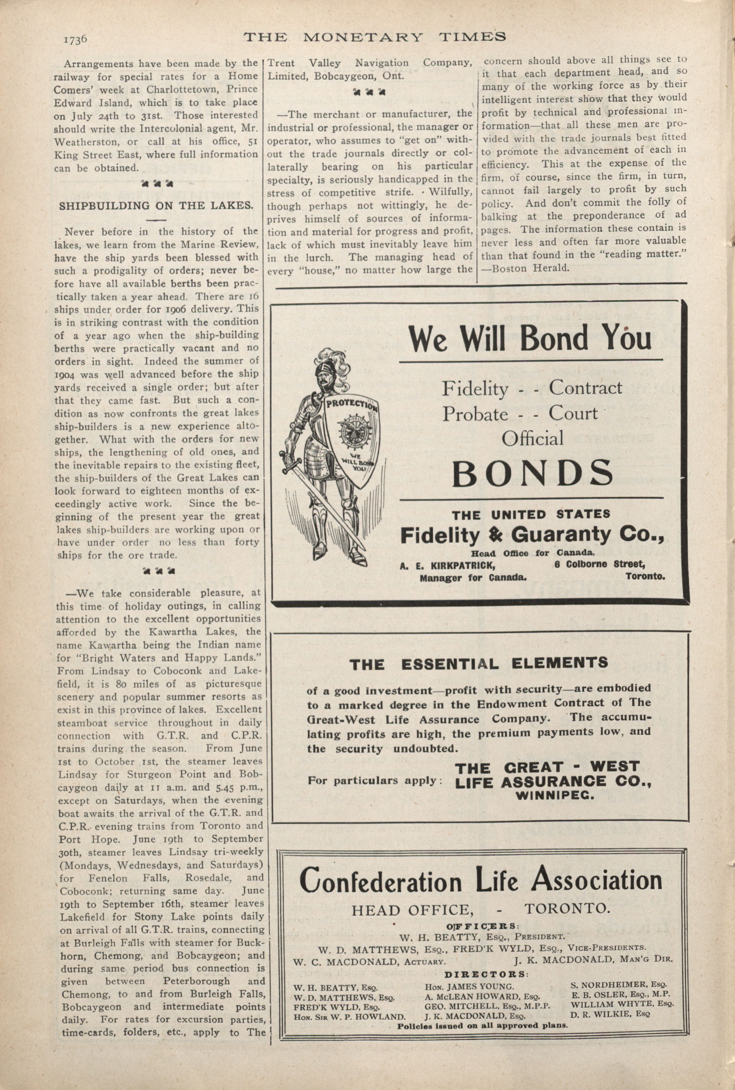- The Monetary Times, trade review and insurance chronicle. : 38th Year No. 52. (June 23, 1905)