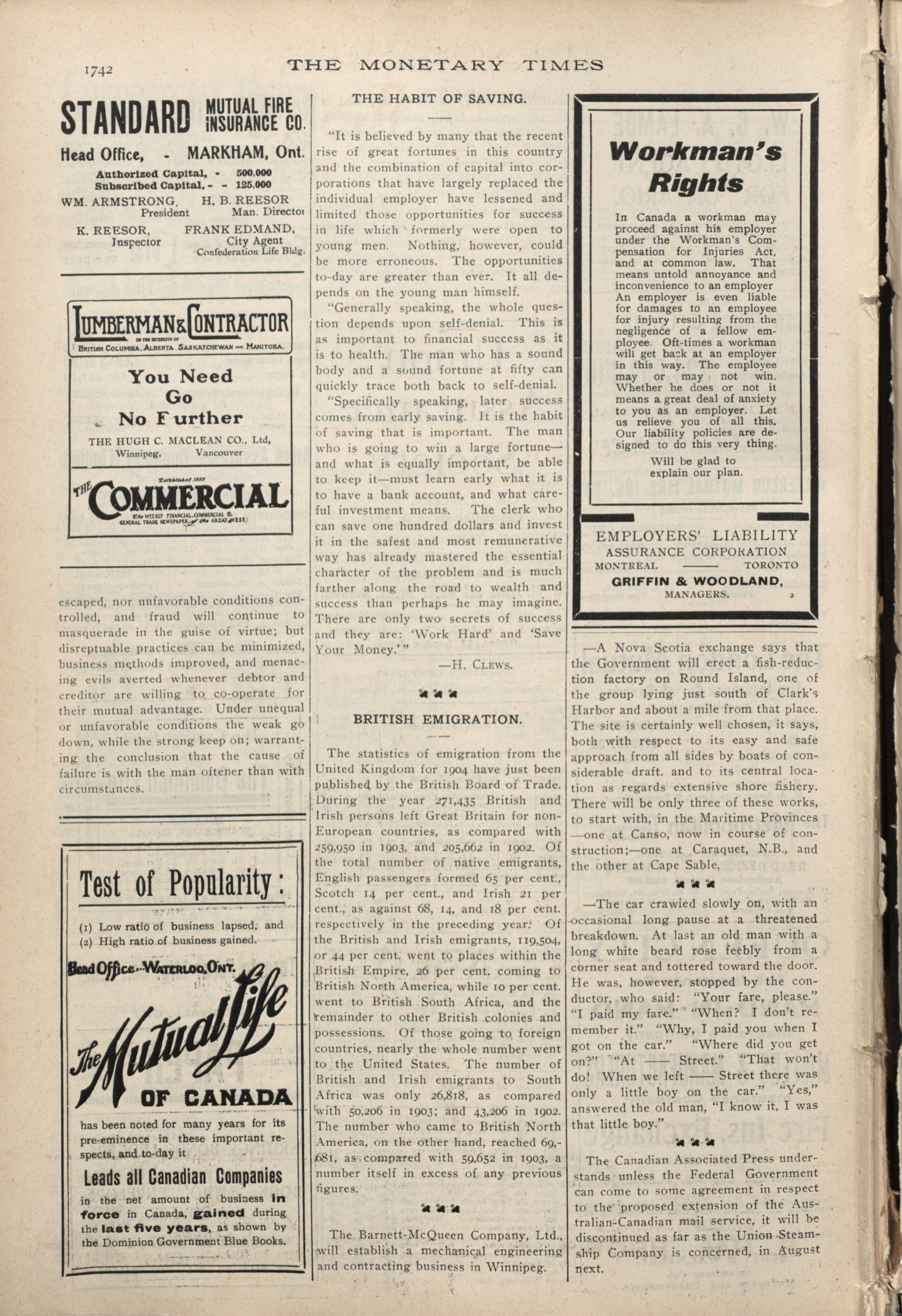 Toronto : [The Monetary Times Printing Co. of Canada, Limited, 1905]; 40 images, 38 avec recherche en texte intégral