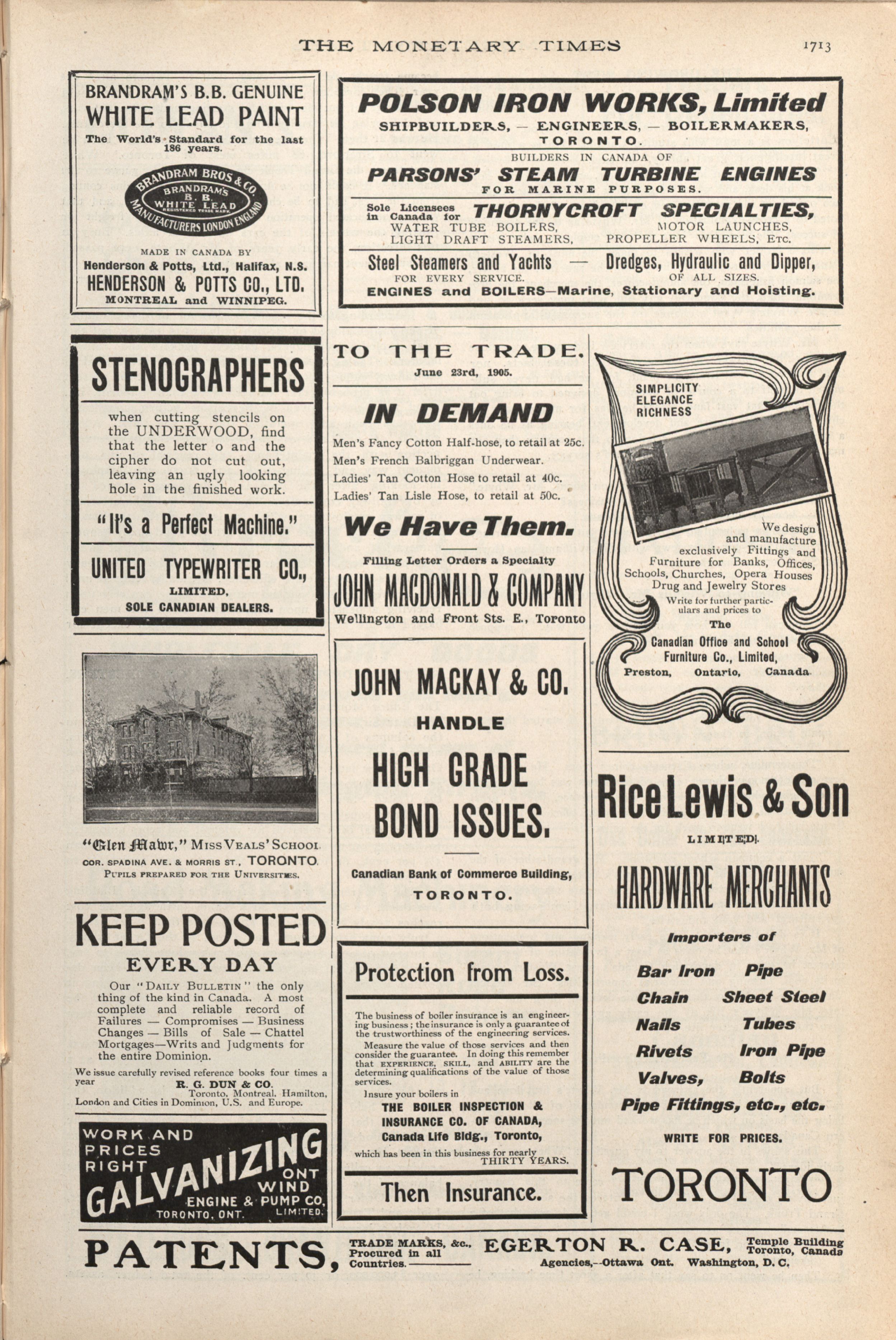 - The Monetary Times, trade review and insurance chronicle. : 38th Year No. 52. (June 23, 1905)