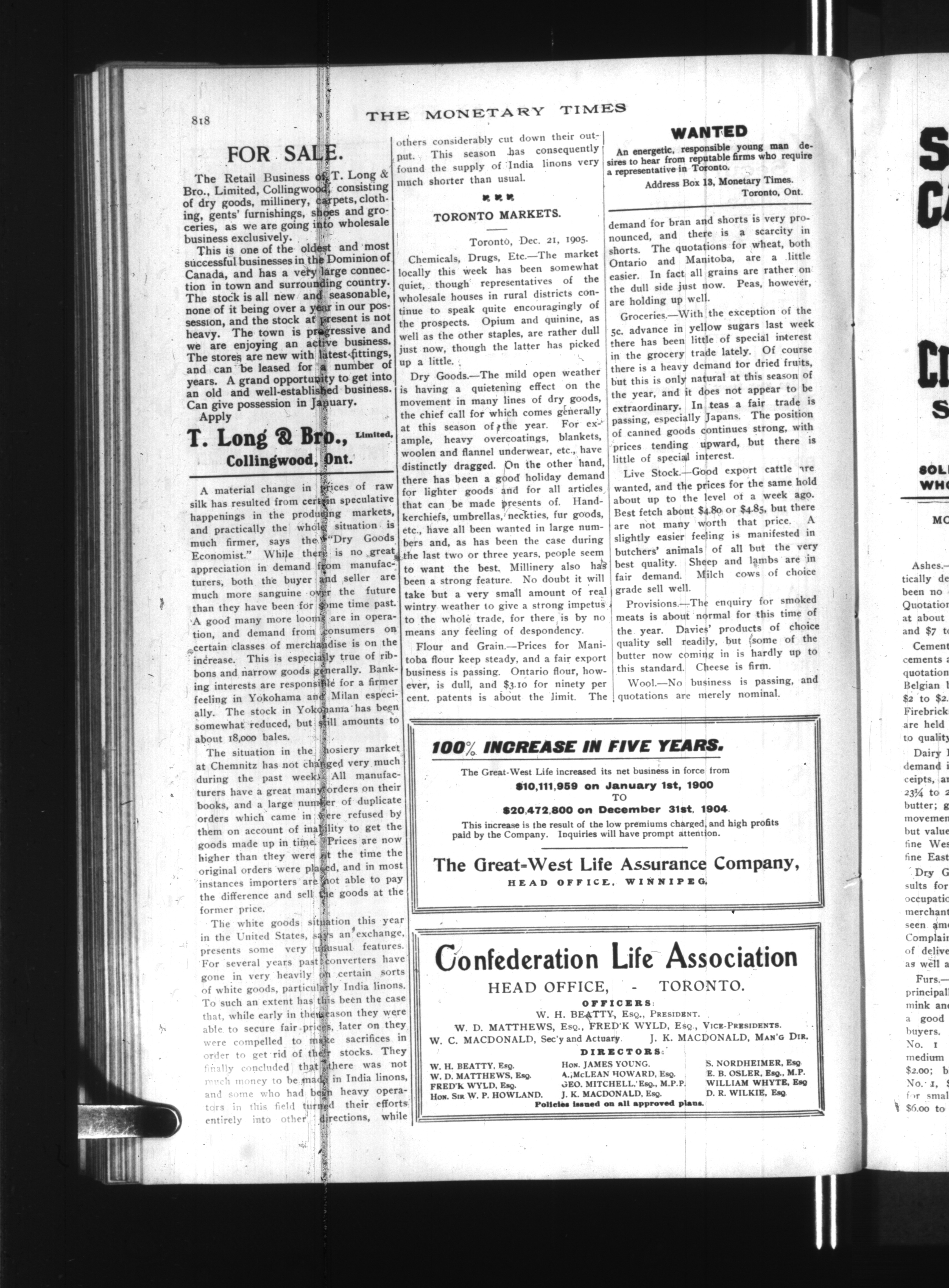 The monetary times, trade review and insurance chronicle : 39th Year, No. 26 [i.e. 25] (December 22, 1905)