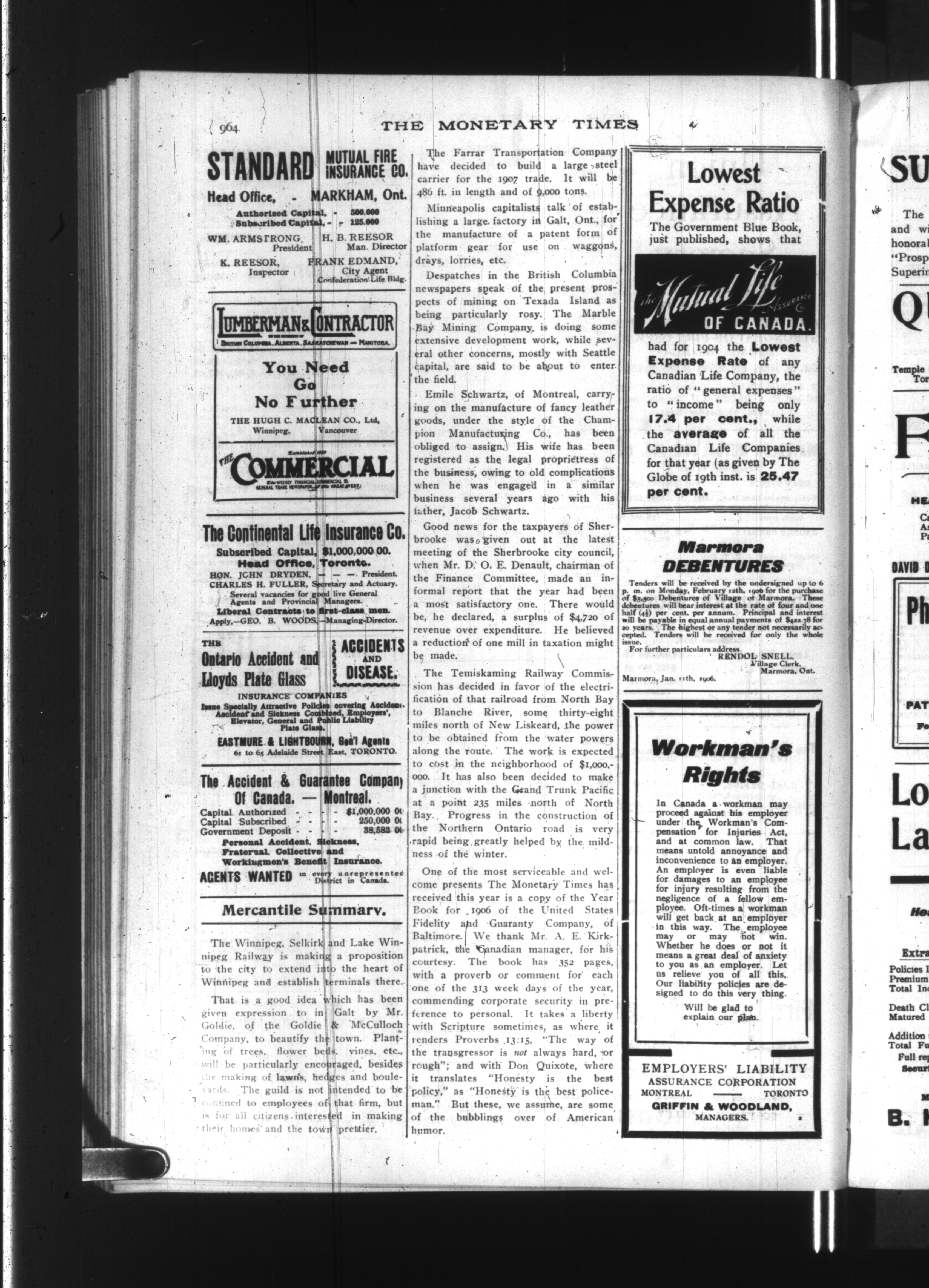 The monetary times, trade review and insurance chronicle : 39th Year, No. 30 [i.e. 29] (January 19, 1906)