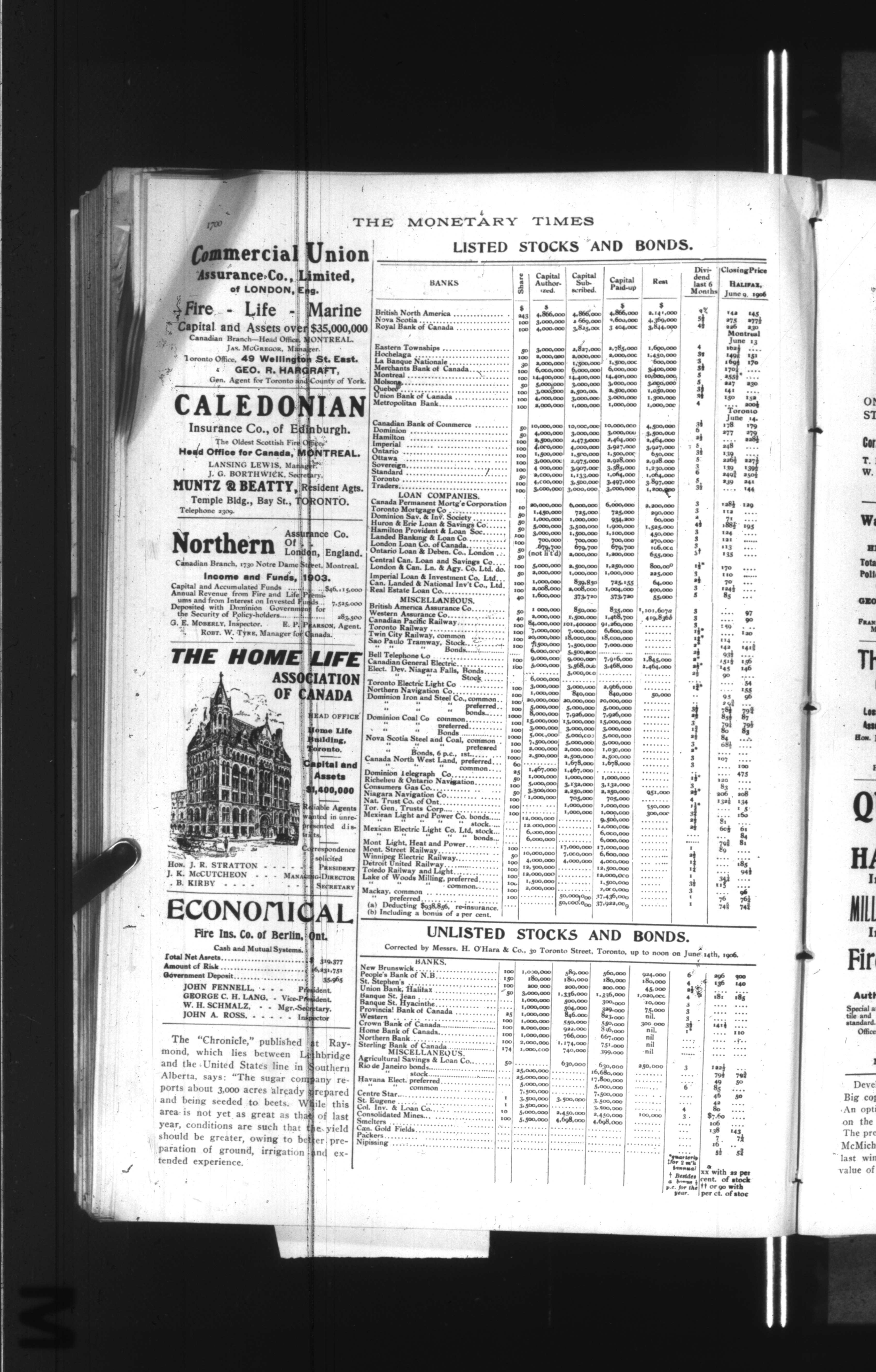 The monetary times, trade review and insurance chronicle : 39th Year, No. 51 [i.e. 50] (June 15, 1906)