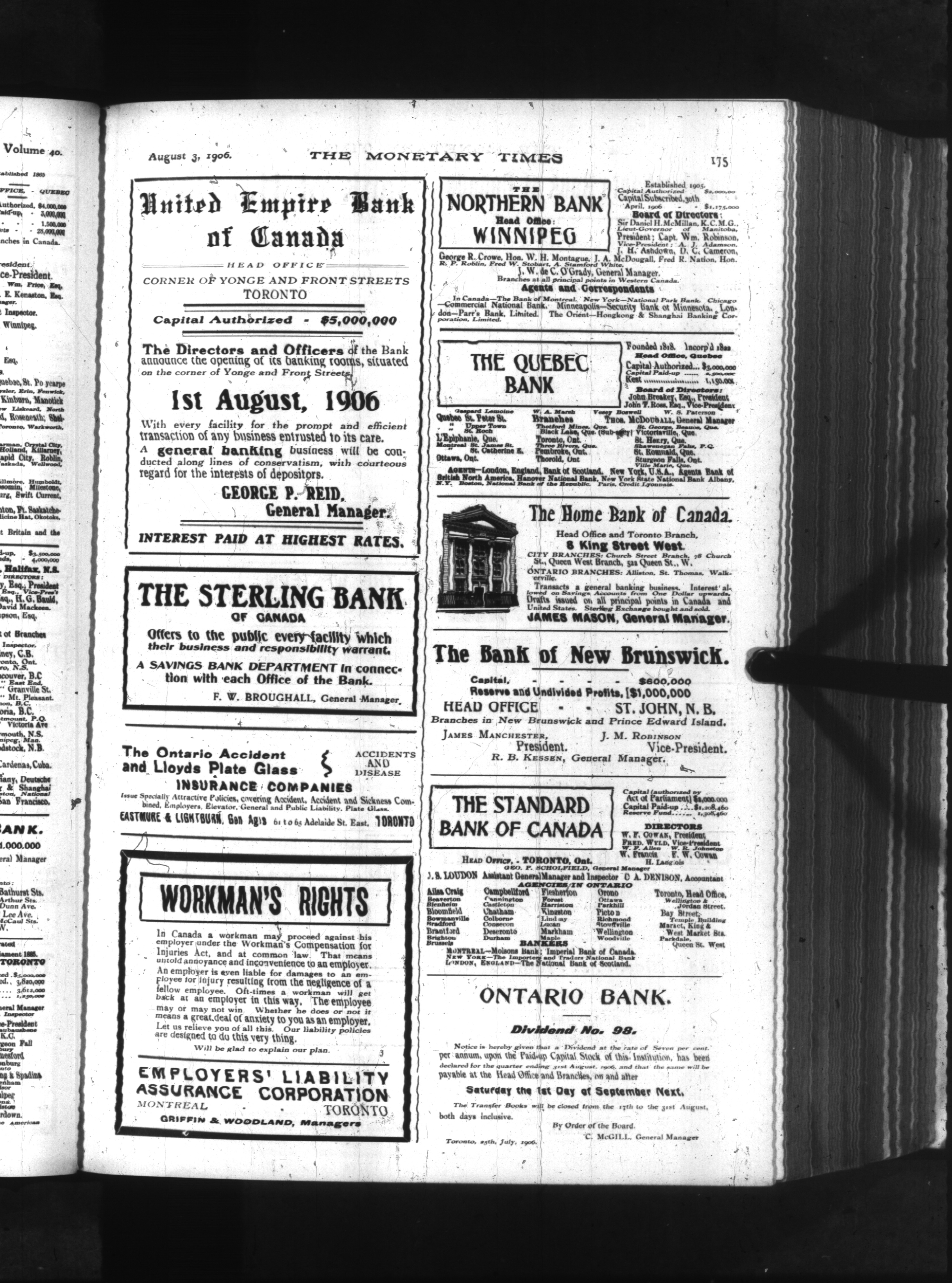 The monetary times, trade review and insurance chronicle : Vol. 40, No. 5 (August 3, 1906)