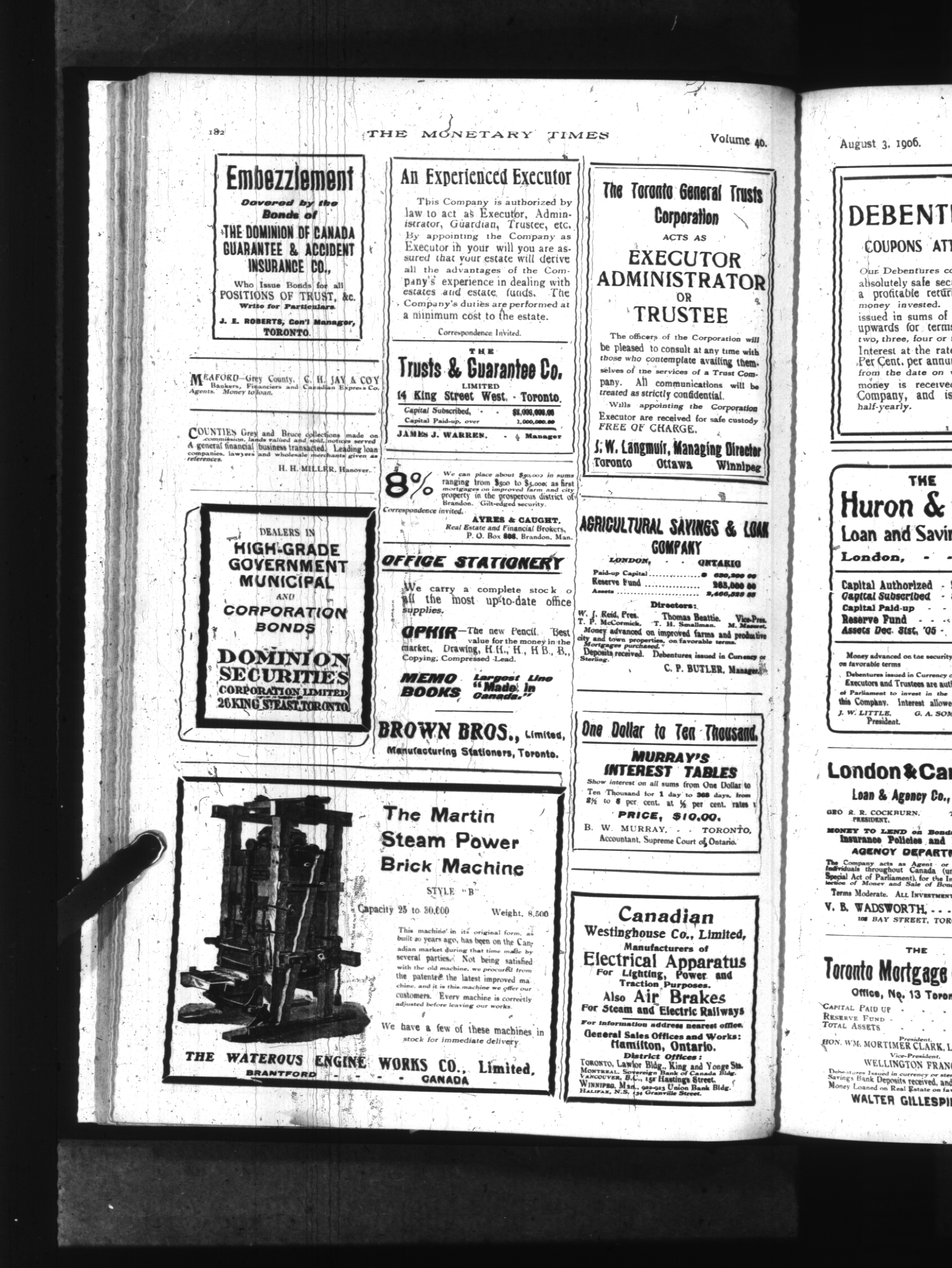 The monetary times, trade review and insurance chronicle : Vol. 40, No. 5 (August 3, 1906)