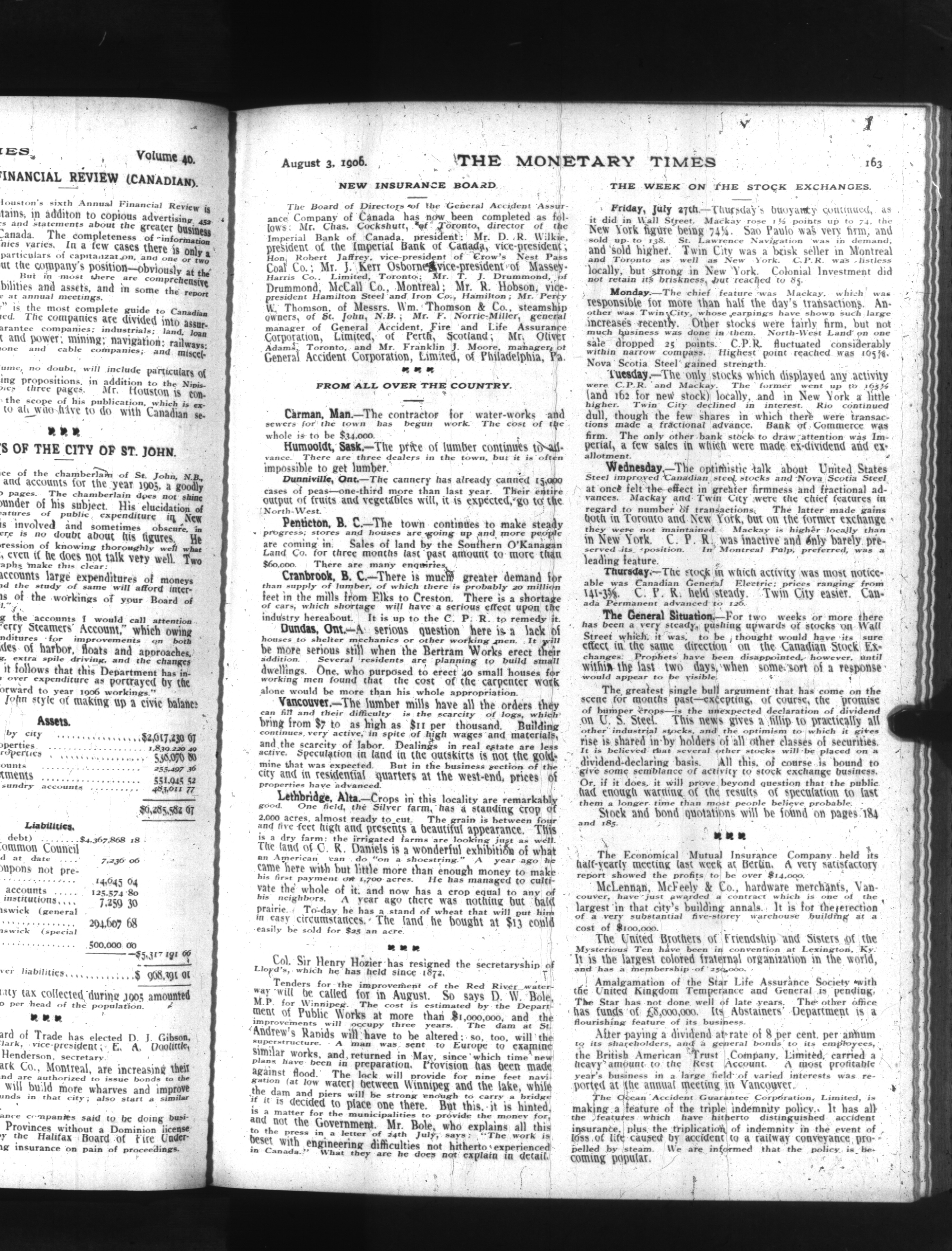 The monetary times, trade review and insurance chronicle : Vol. 40, No. 5 (August 3, 1906)