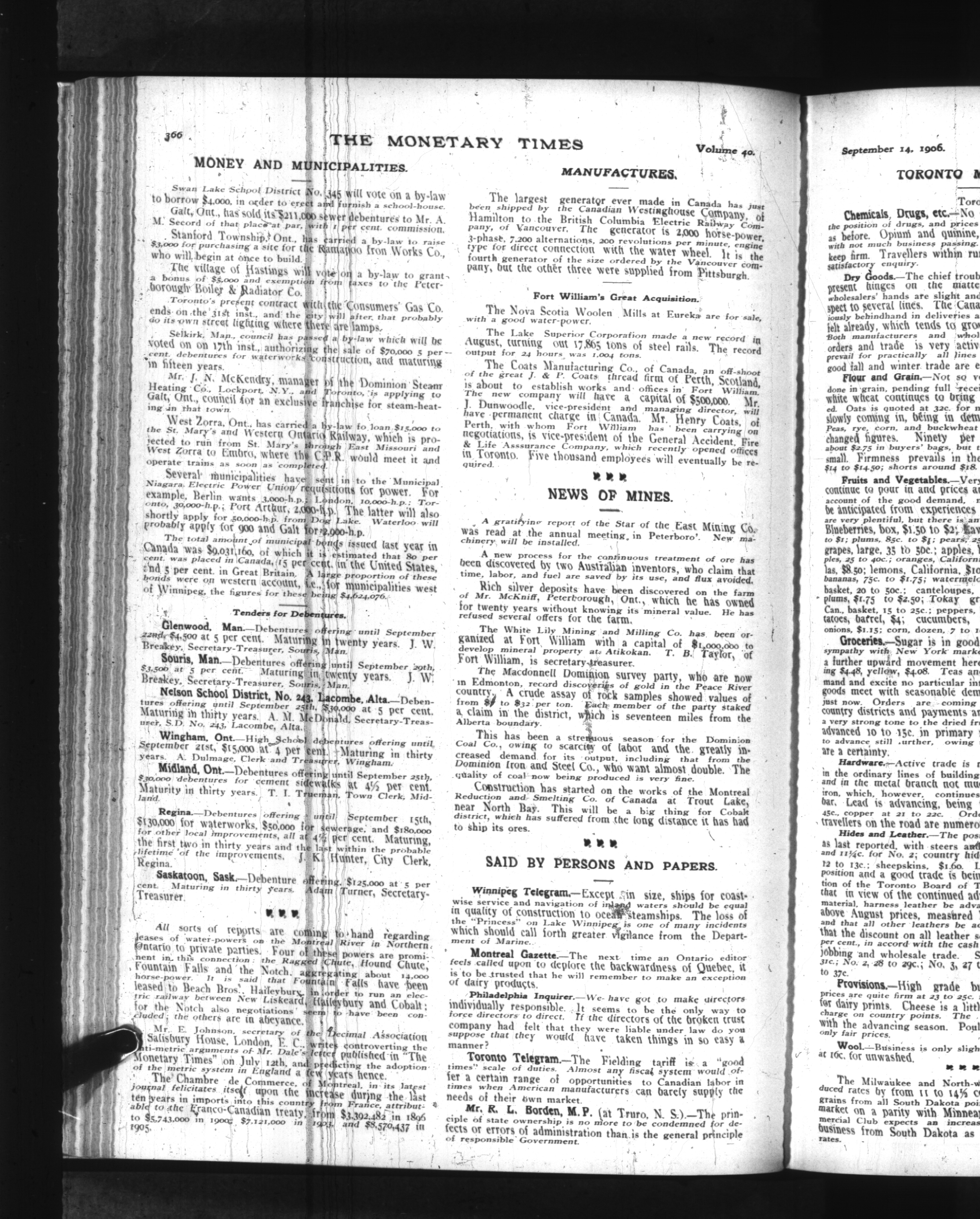 The monetary times, trade review and insurance chronicle : Vol. 40, No. 11 (September 14, 1906)