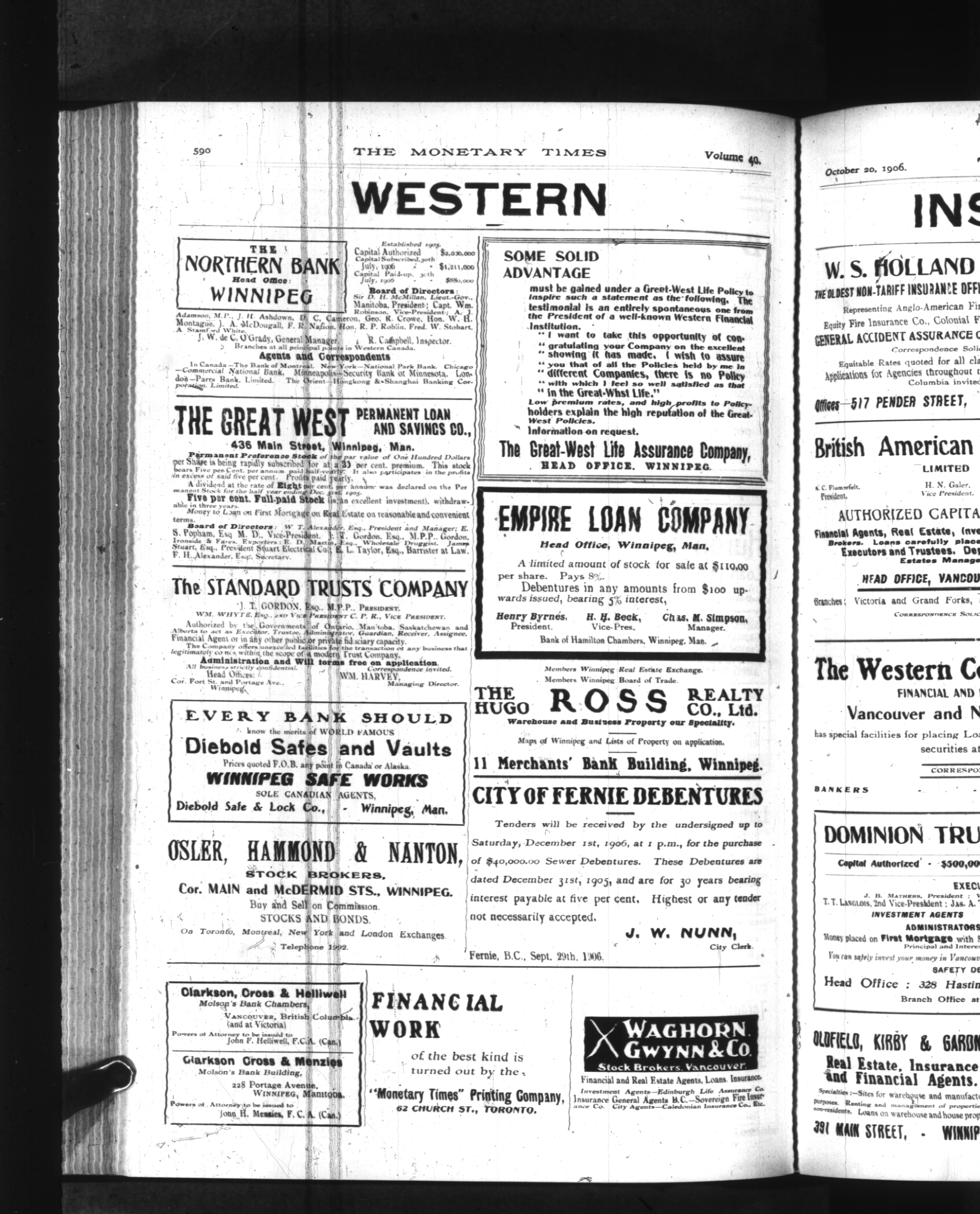 The monetary times, trade review and insurance chronicle : Vol. 40, No. 16 (October 20, 1906)