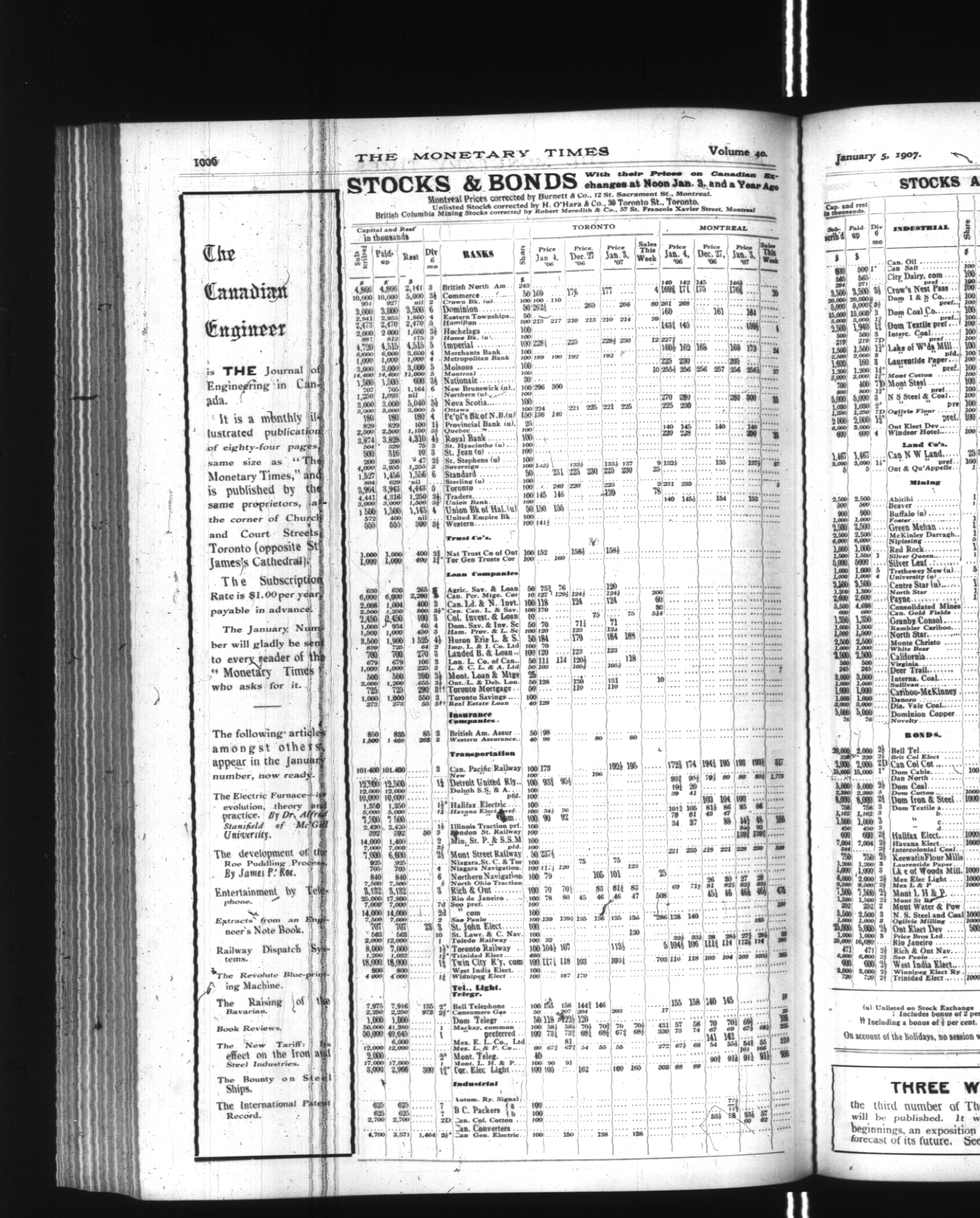 The monetary times, trade review and insurance chronicle : Vol. 40, No. 27 (January 5, 1907)