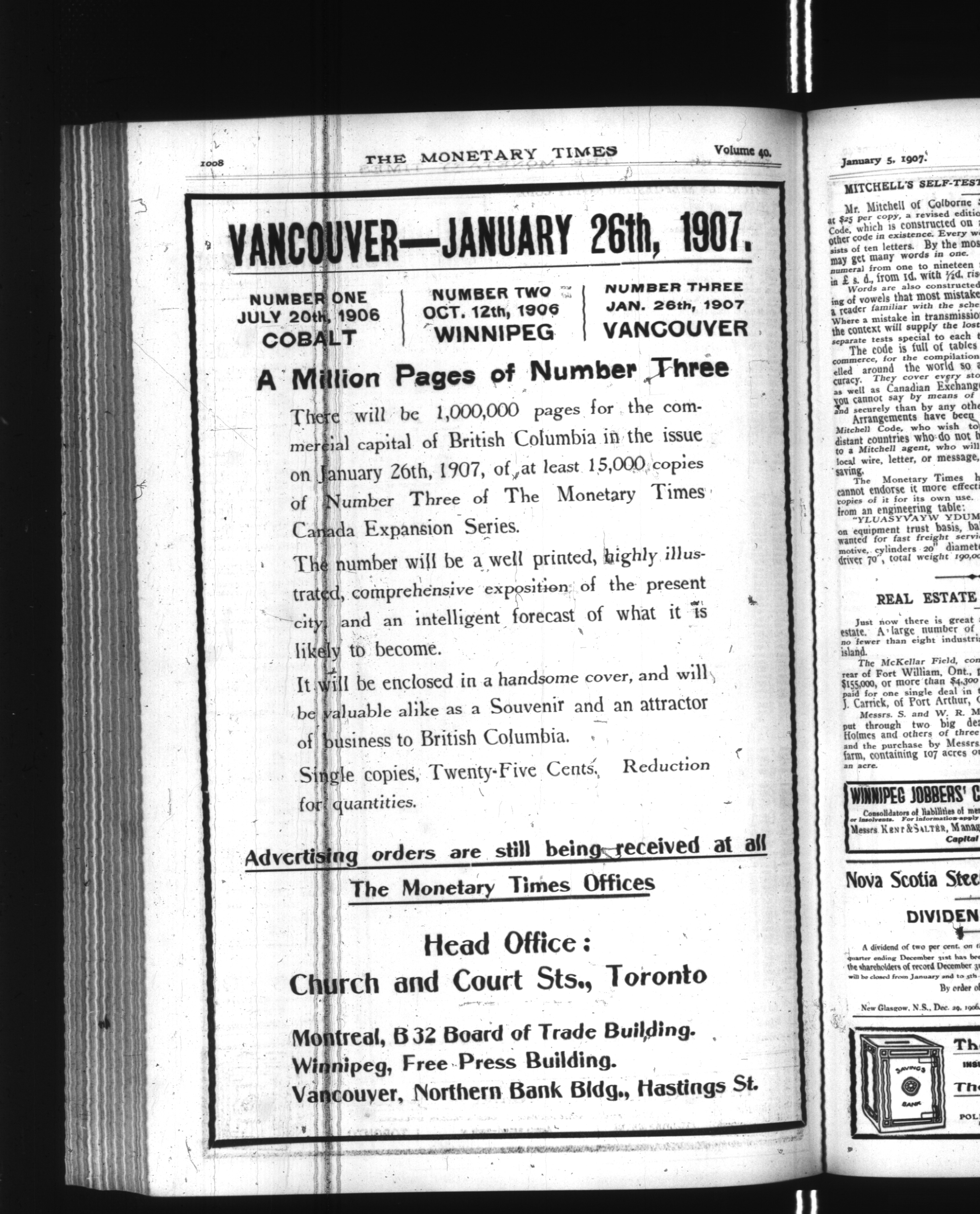 The monetary times, trade review and insurance chronicle : Vol. 40, No. 27 (January 5, 1907)