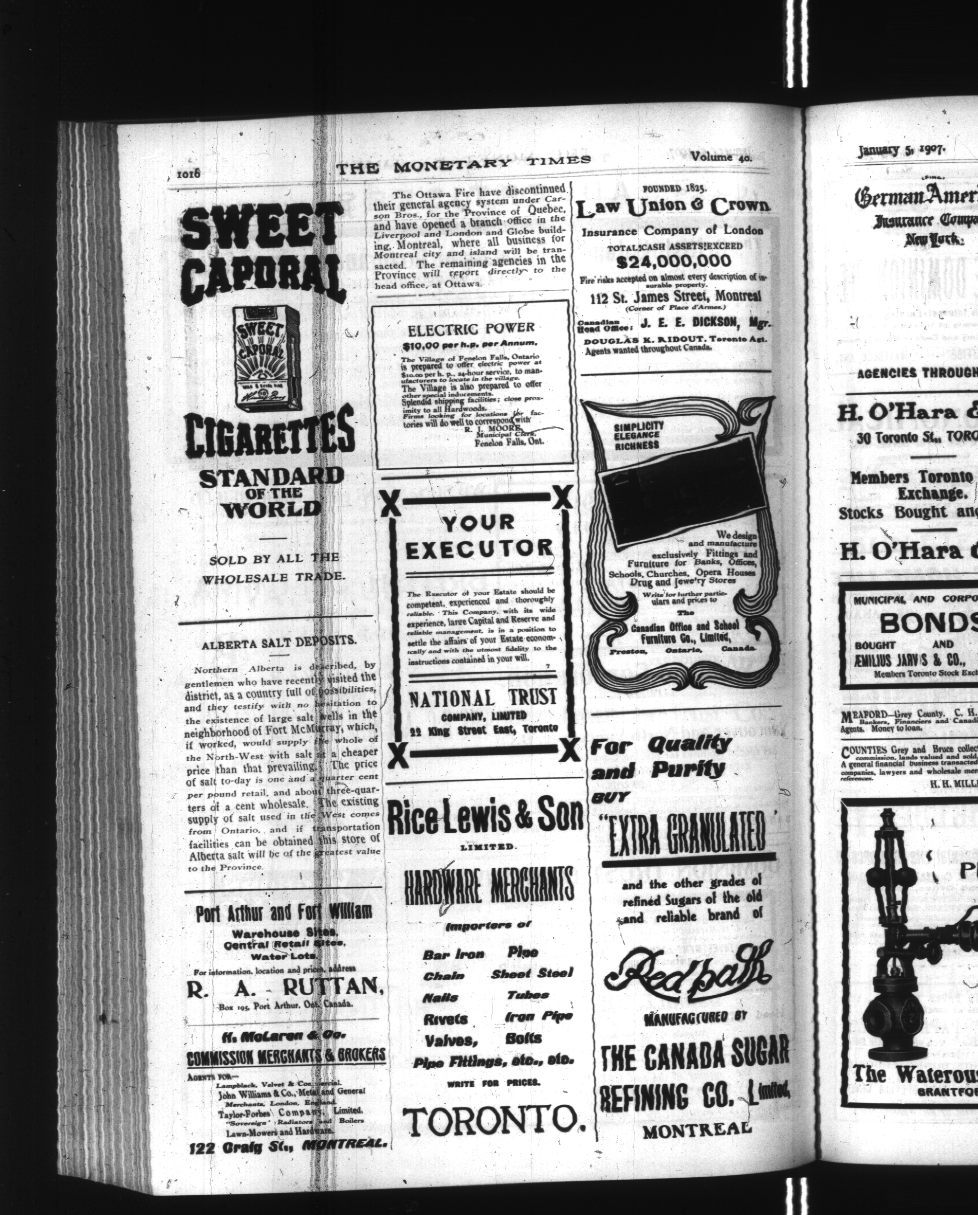 The monetary times, trade review and insurance chronicle : Vol. 40, No. 27 (January 5, 1907)