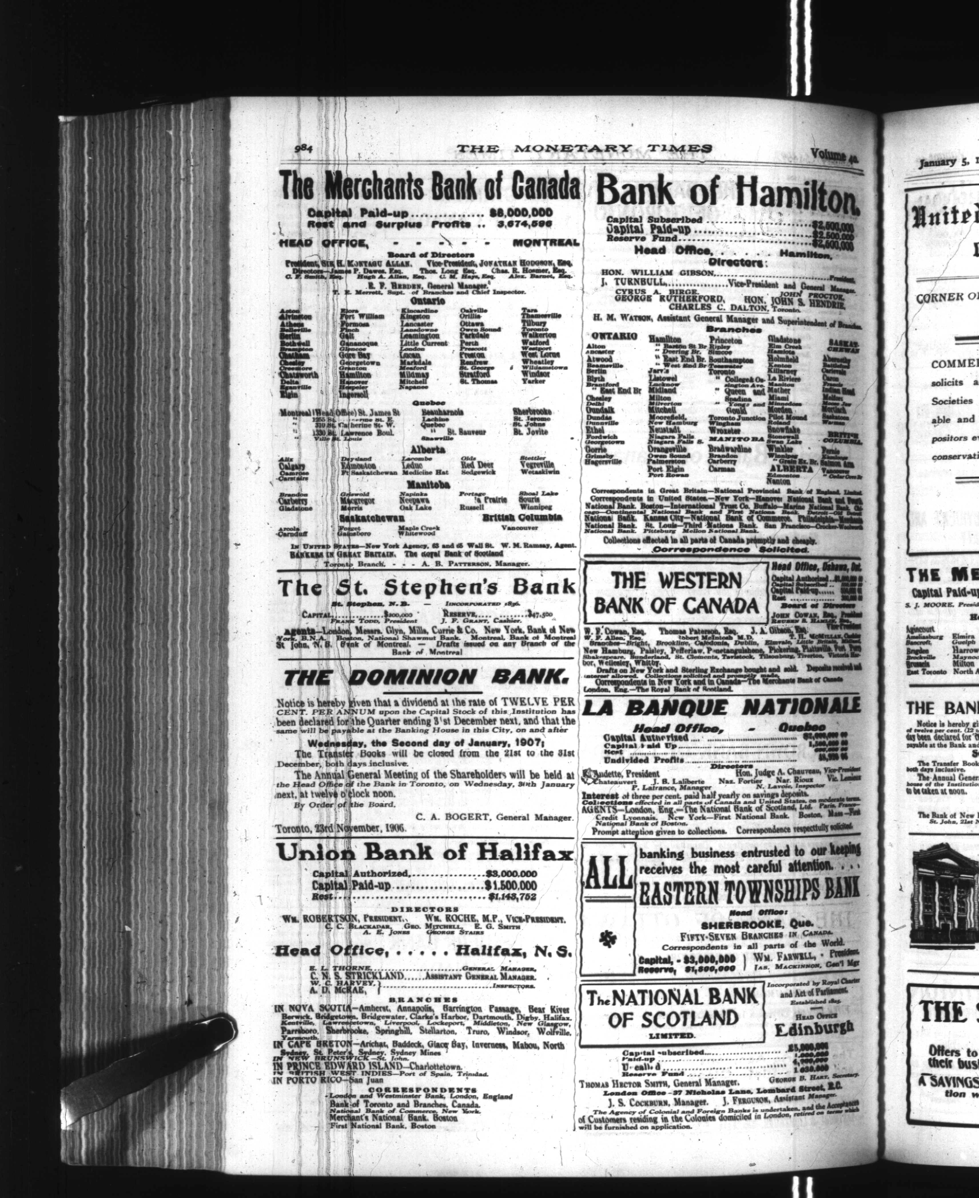 The monetary times, trade review and insurance chronicle : Vol. 40, No. 27 (January 5, 1907)