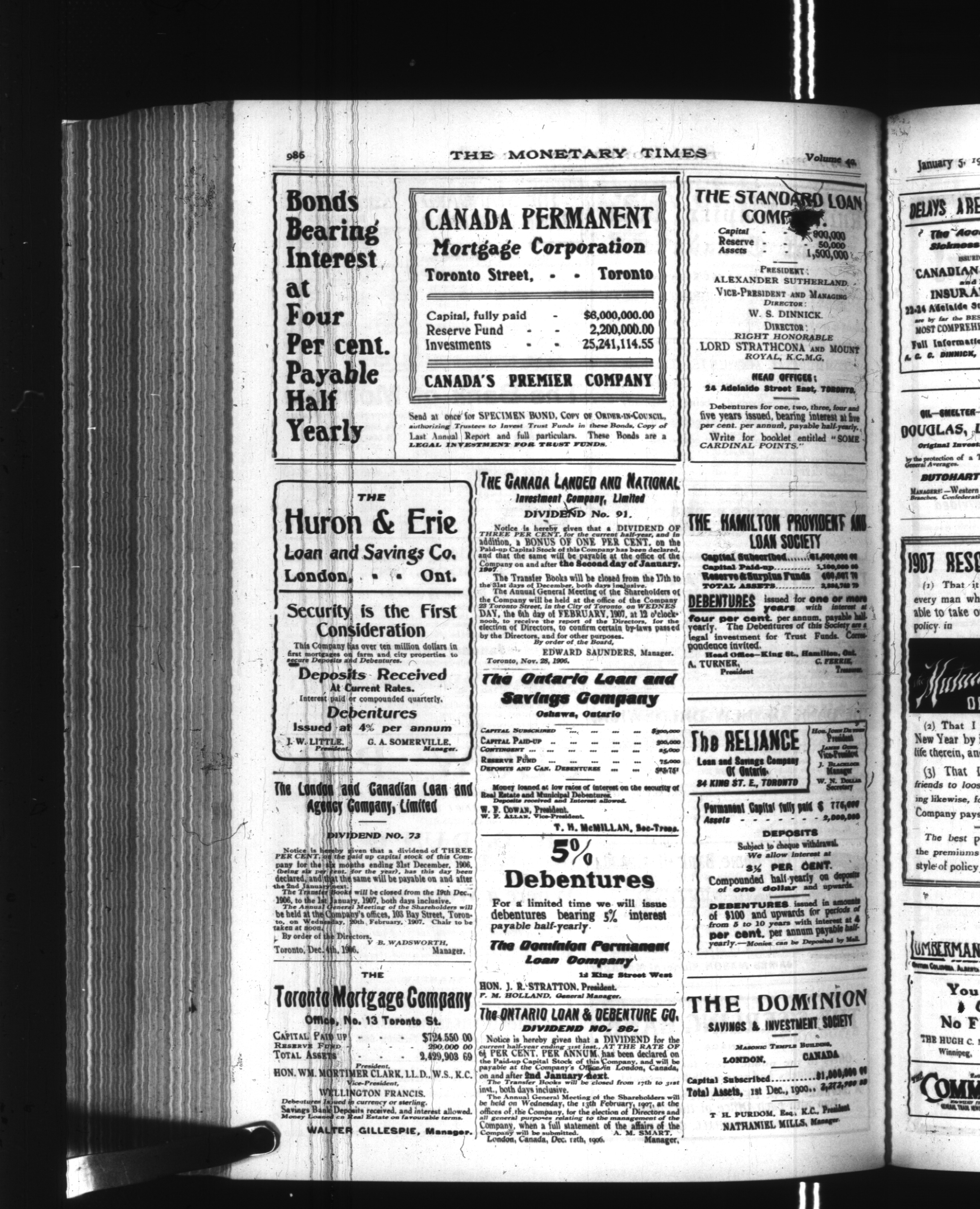 The monetary times, trade review and insurance chronicle : Vol. 40, No. 27 (January 5, 1907)