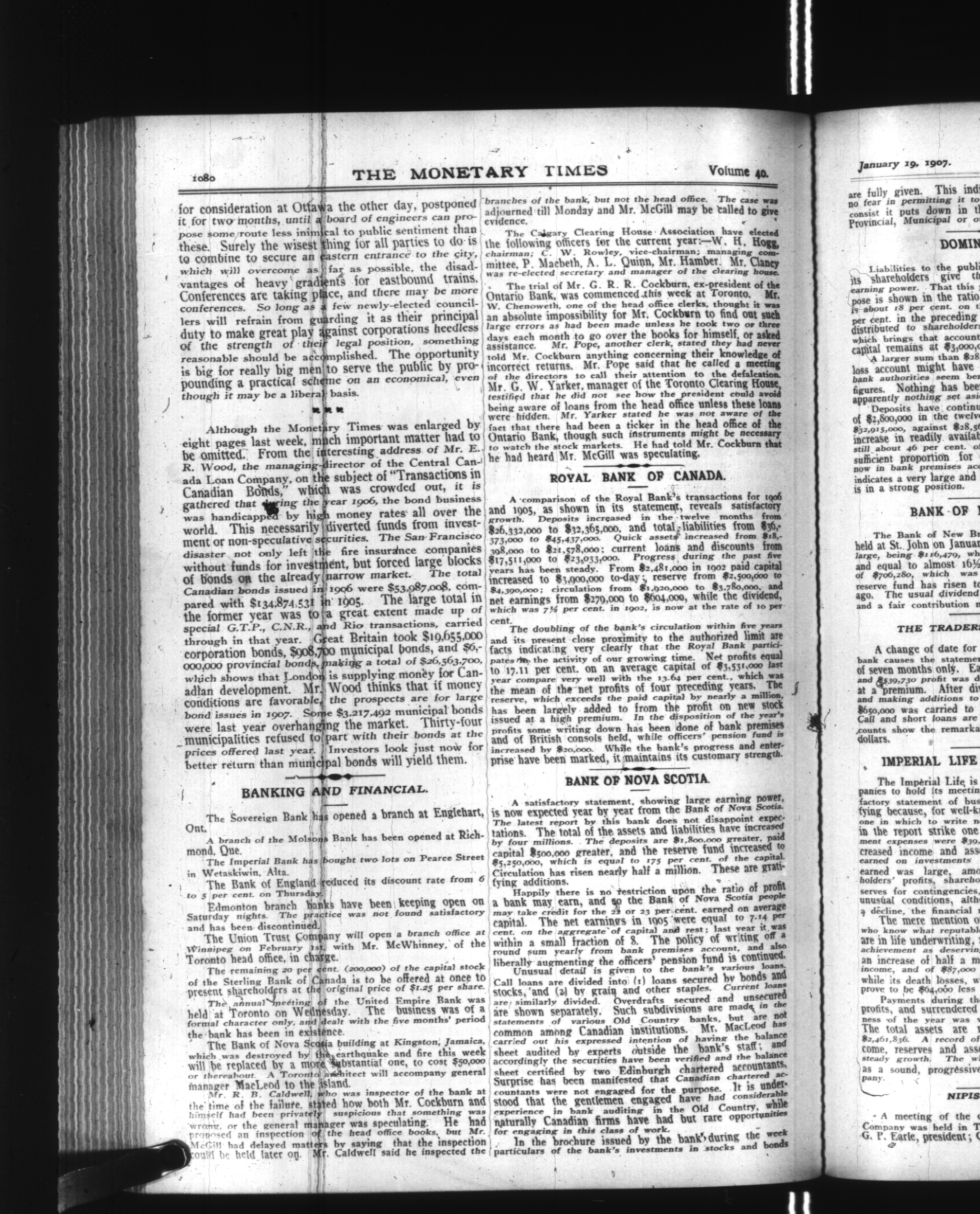 The monetary times, trade review and insurance chronicle : Vol. 40, No. 29 (January 19, 1907)