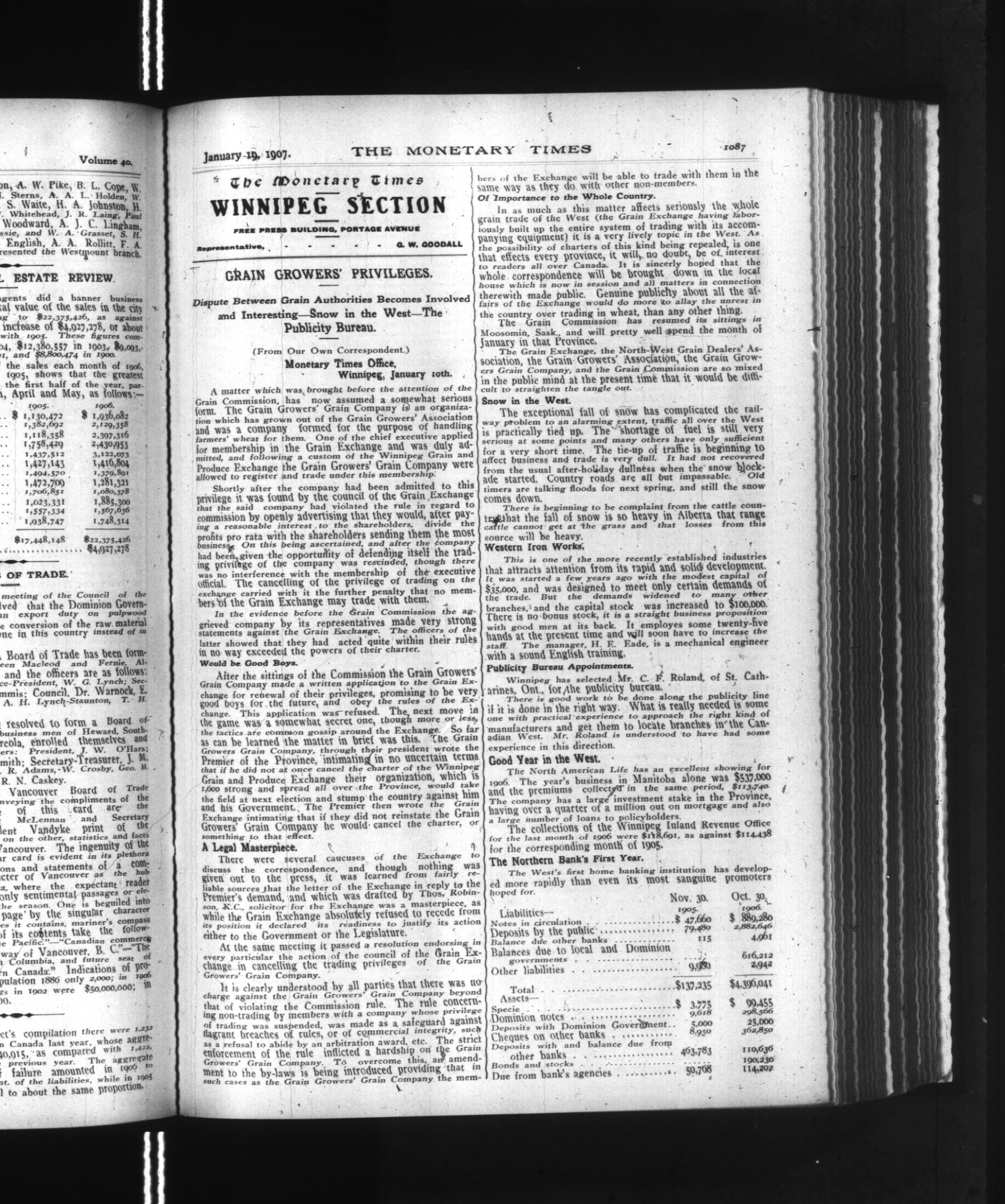 The monetary times, trade review and insurance chronicle : Vol. 40, No. 29 (January 19, 1907)