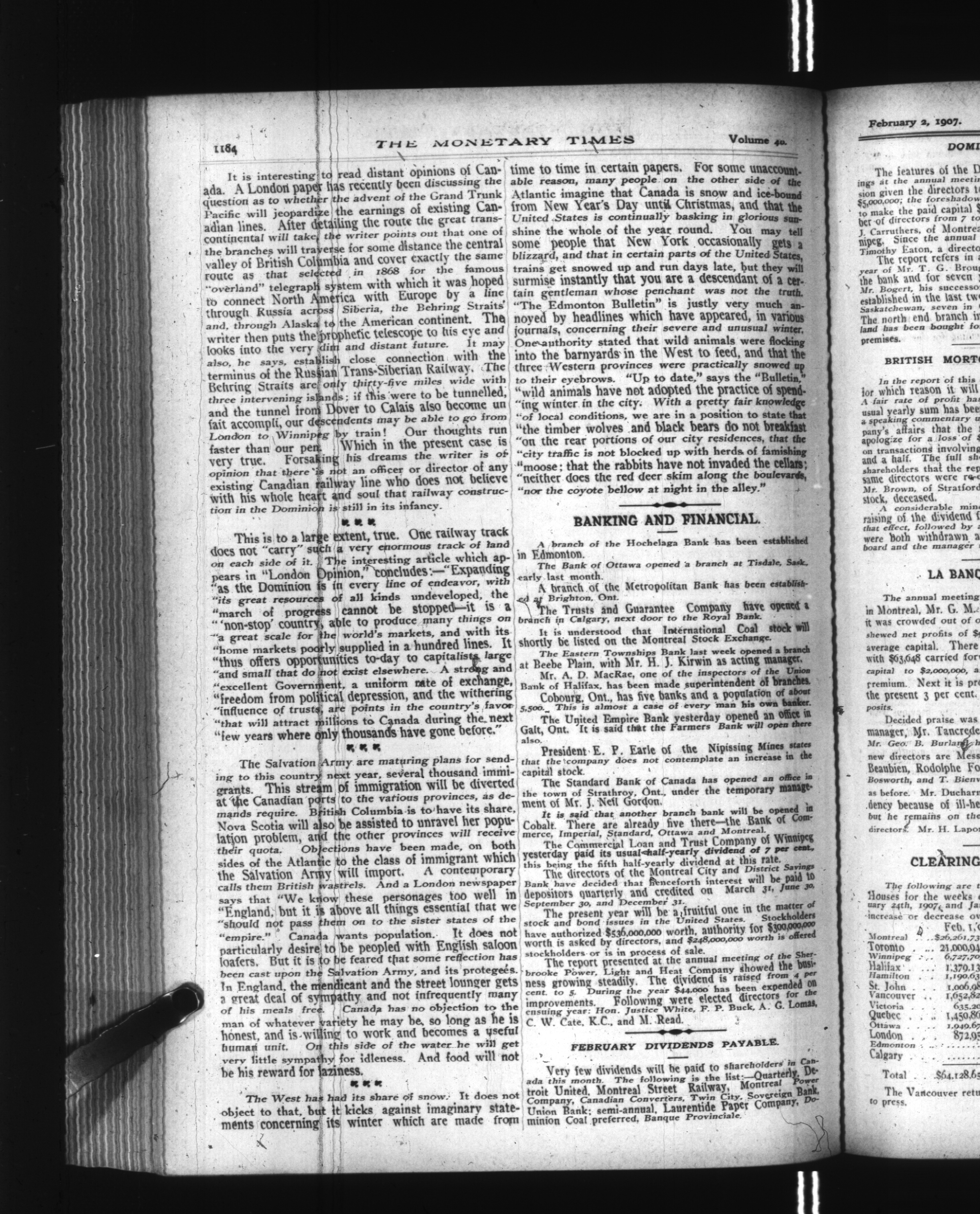 The monetary times, trade review and insurance chronicle : Vol. 40, No. 31 (February 2, 1907)