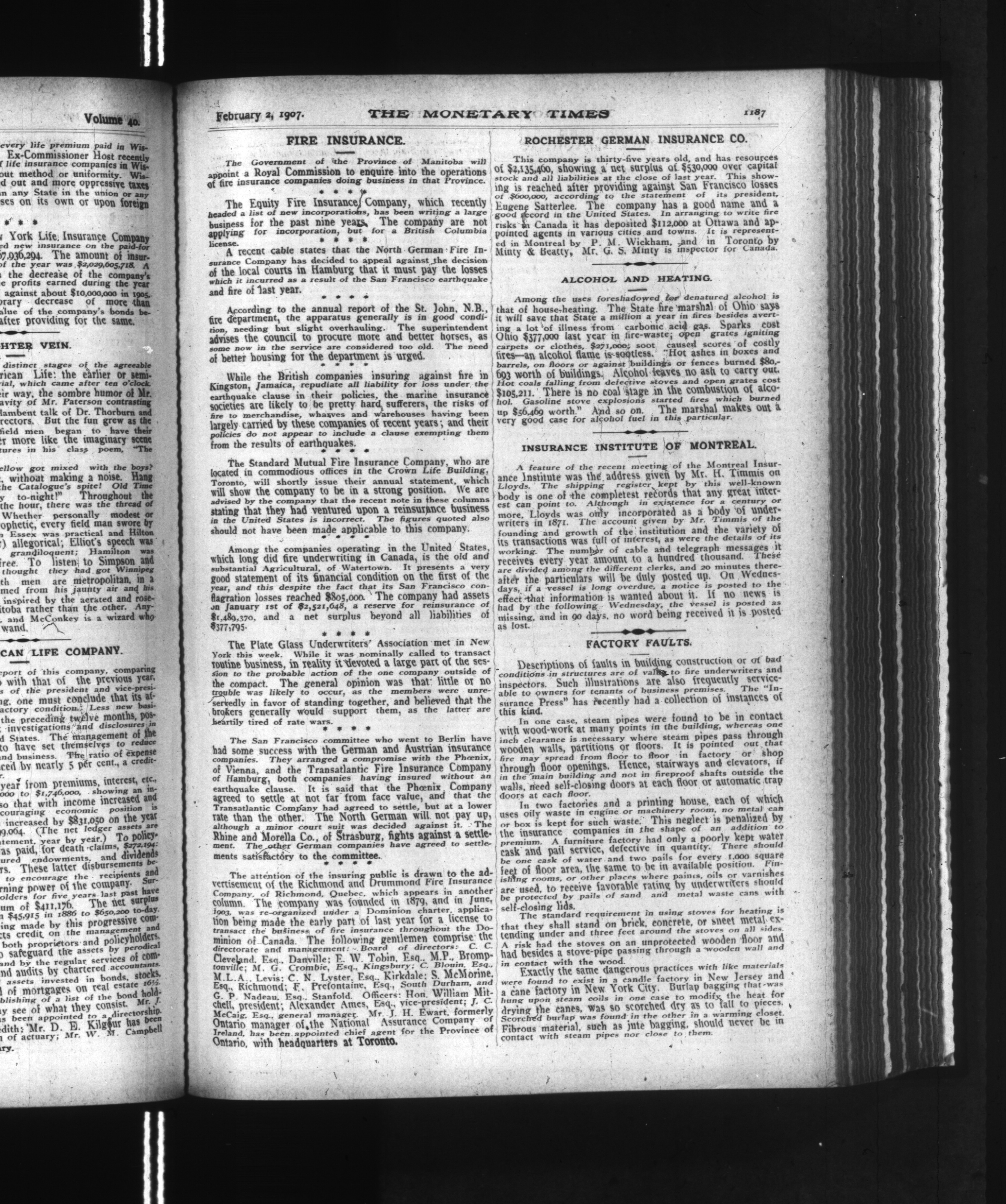 The monetary times, trade review and insurance chronicle : Vol. 40, No. 31 (February 2, 1907)