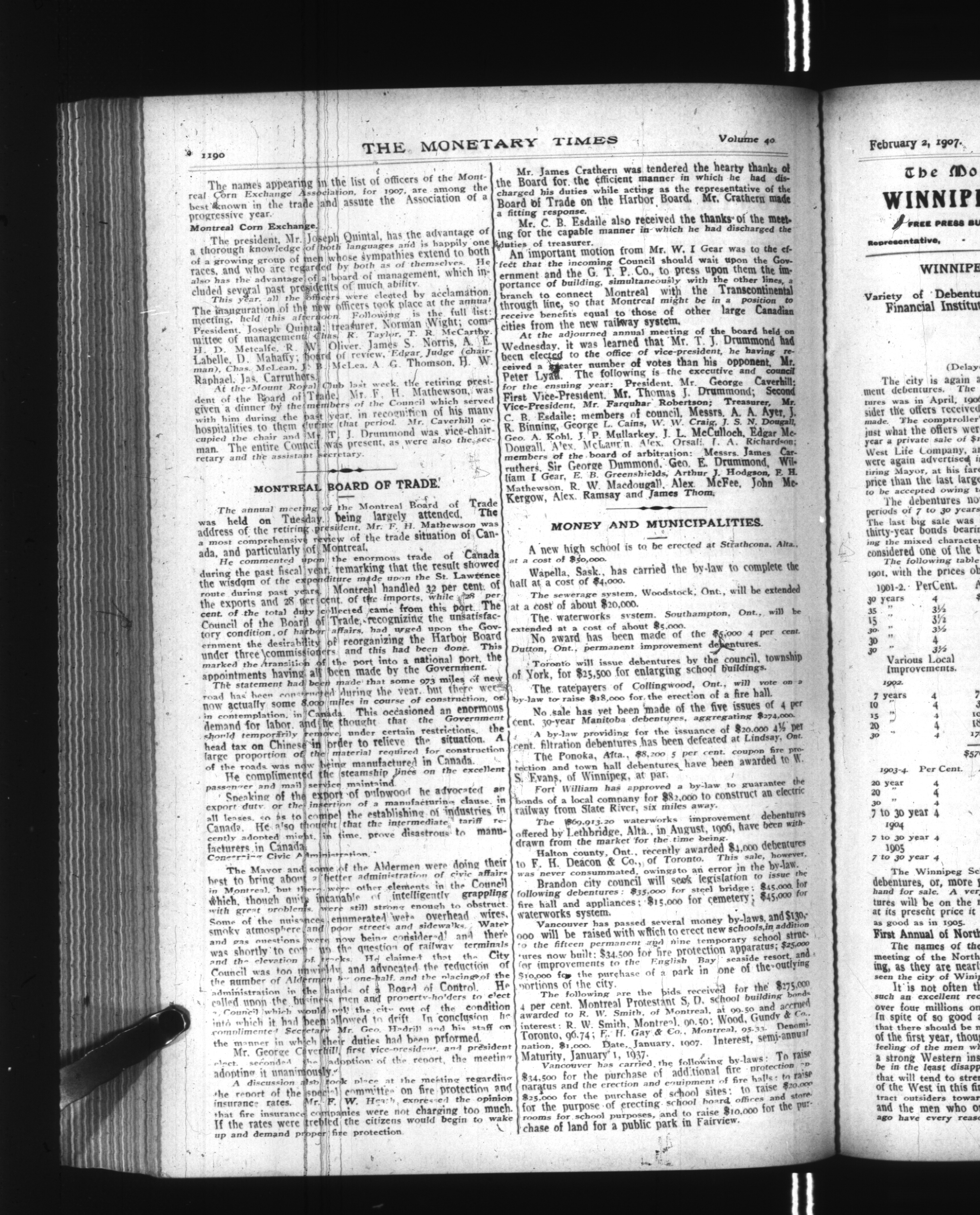 The monetary times, trade review and insurance chronicle : Vol. 40, No. 31 (February 2, 1907)