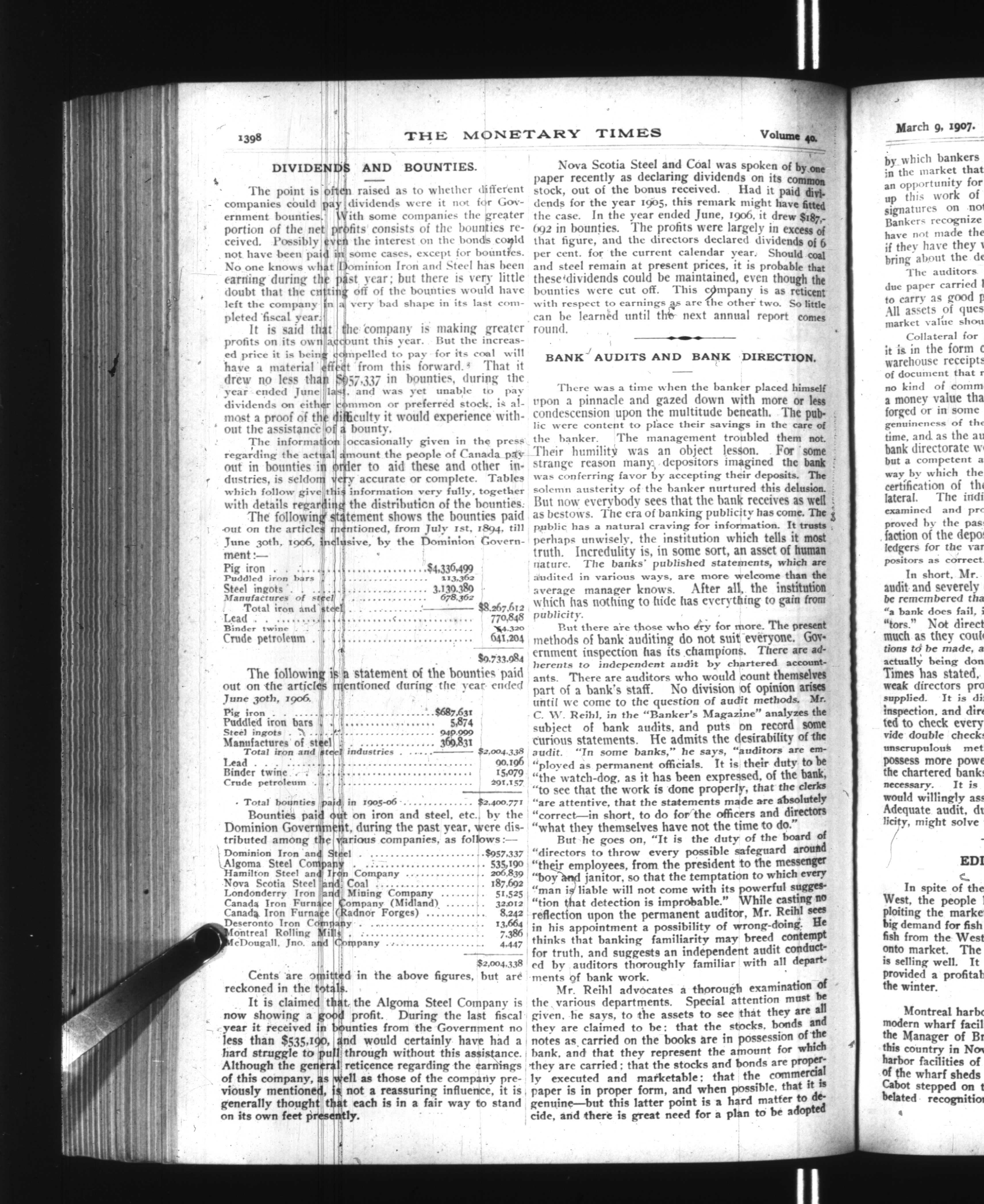 The monetary times, trade review and insurance chronicle : Vol. 40, No. 36 (March 9, 1907)