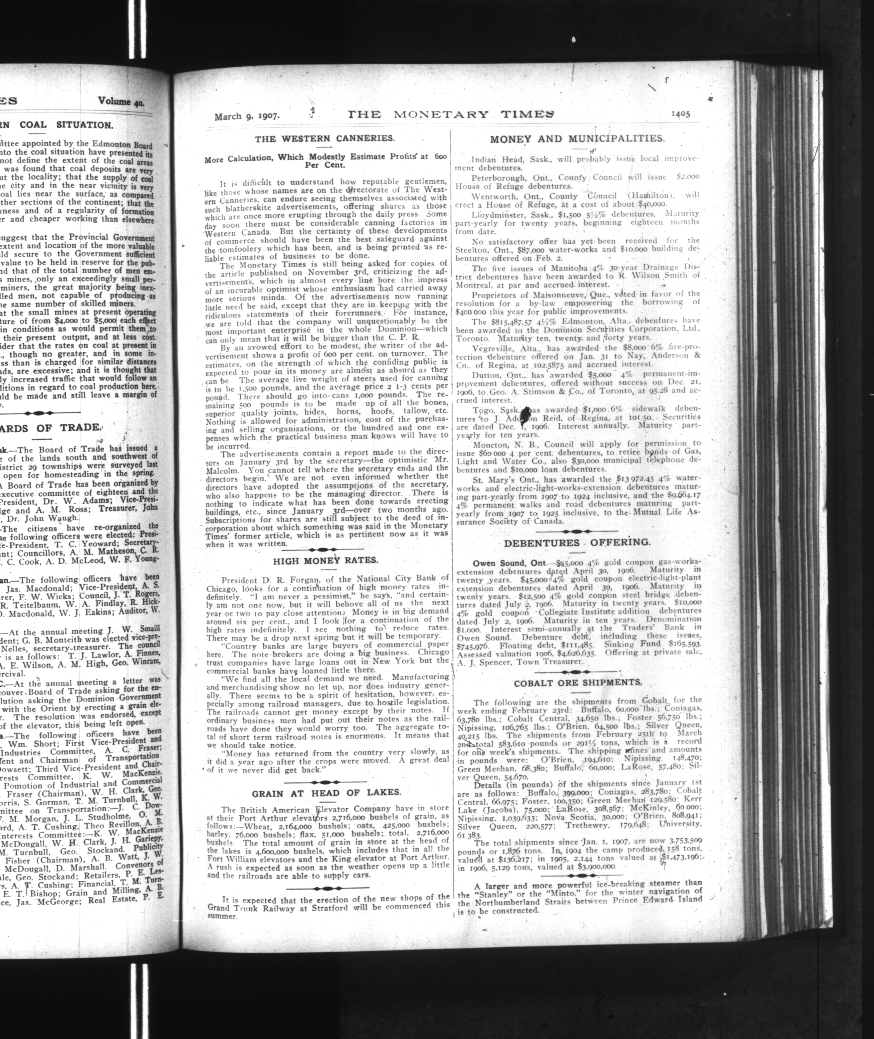 The monetary times, trade review and insurance chronicle : Vol. 40, No. 36 (March 9, 1907)