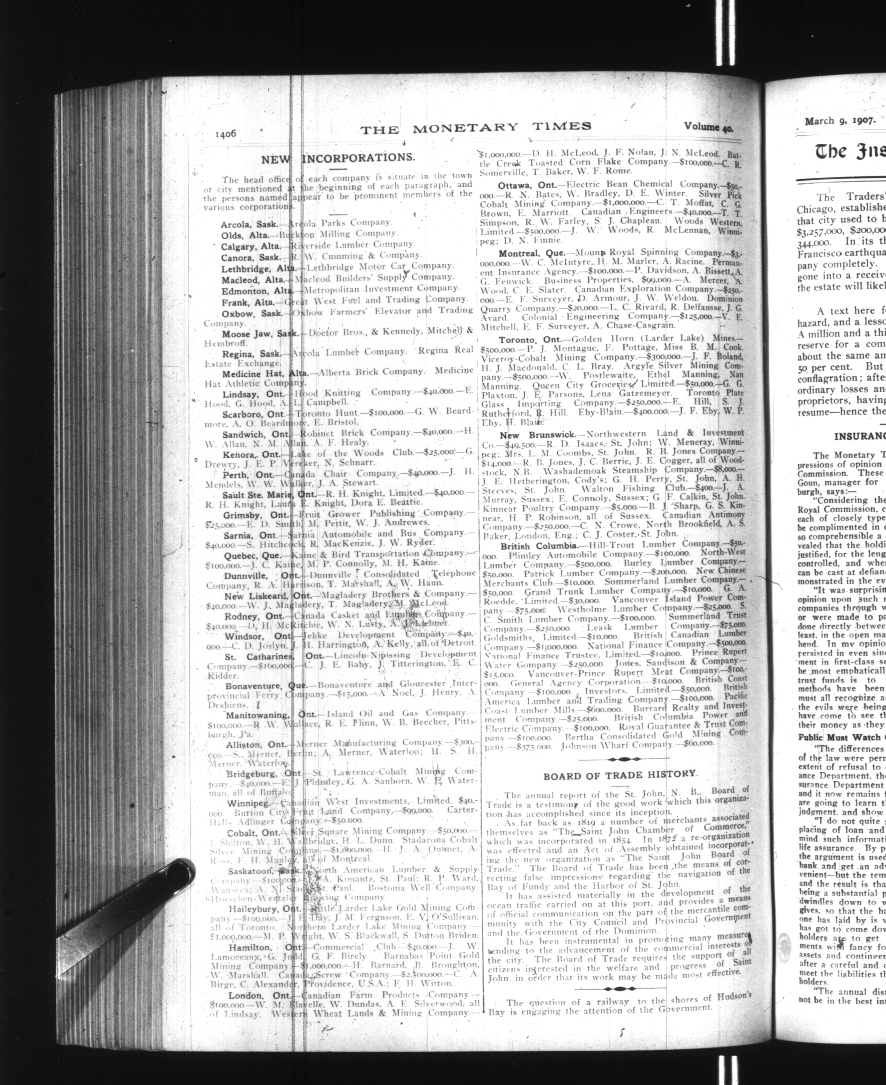 The monetary times, trade review and insurance chronicle : Vol. 40, No. 36 (March 9, 1907)