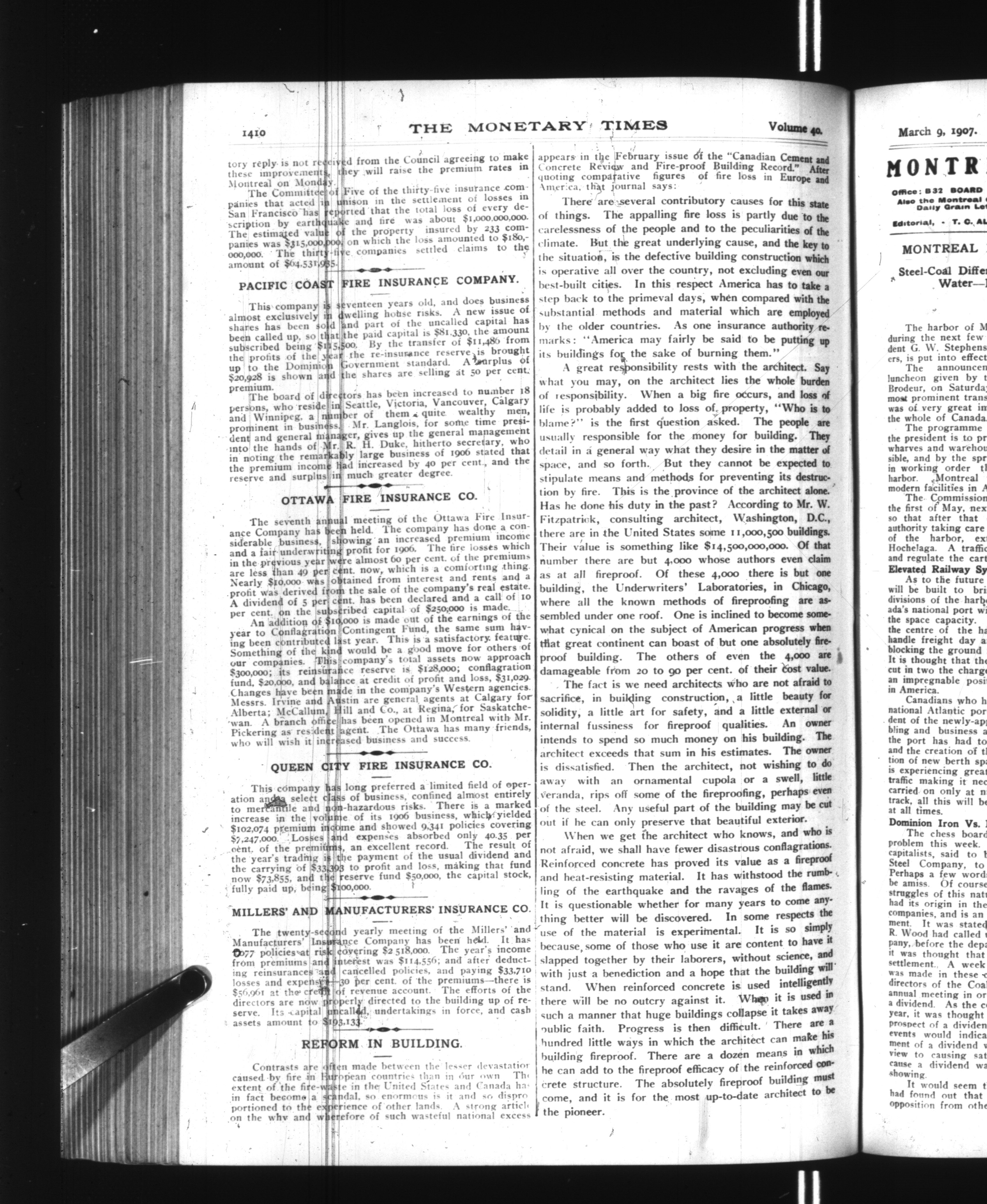 The monetary times, trade review and insurance chronicle : Vol. 40, No. 36 (March 9, 1907)