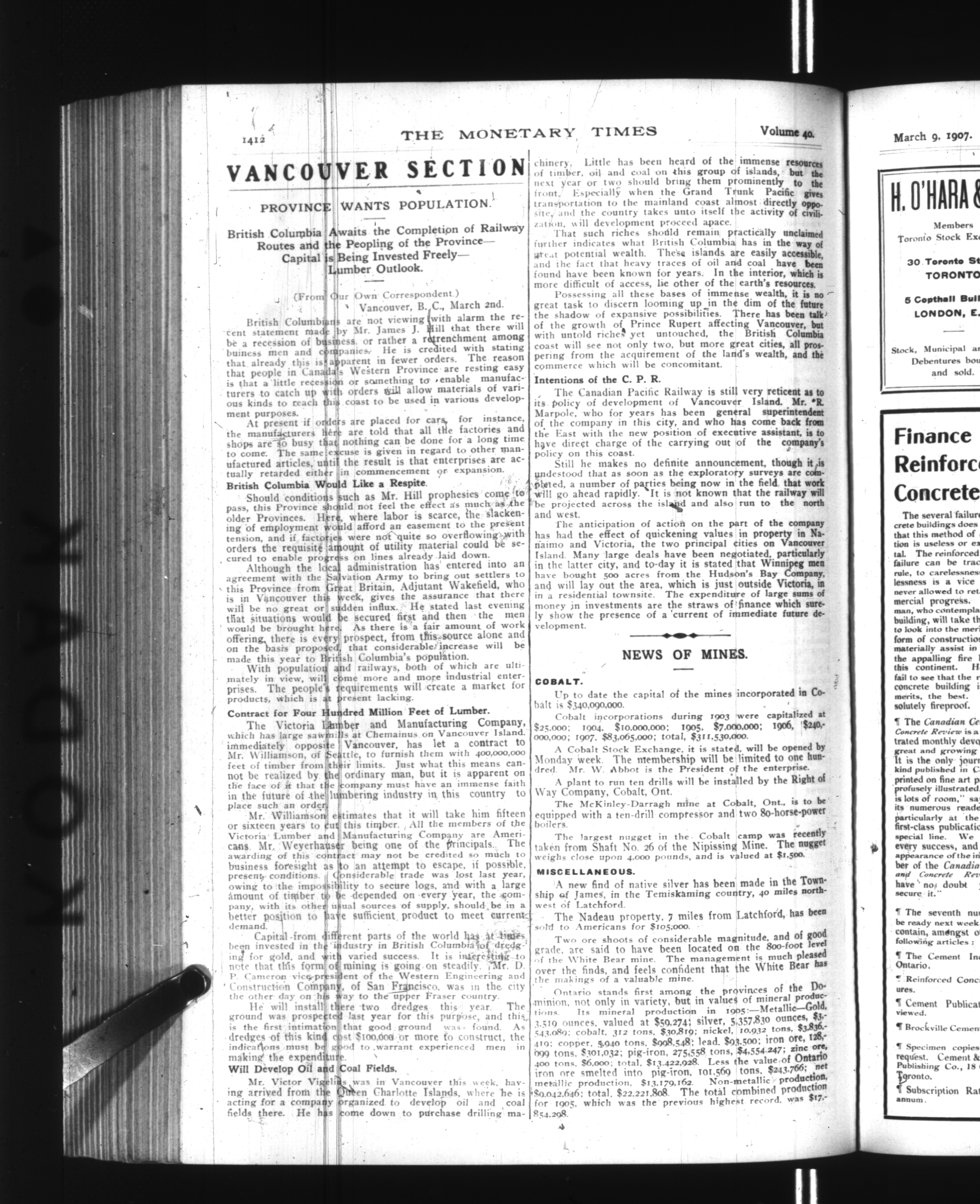 The monetary times, trade review and insurance chronicle : Vol. 40, No. 36 (March 9, 1907)