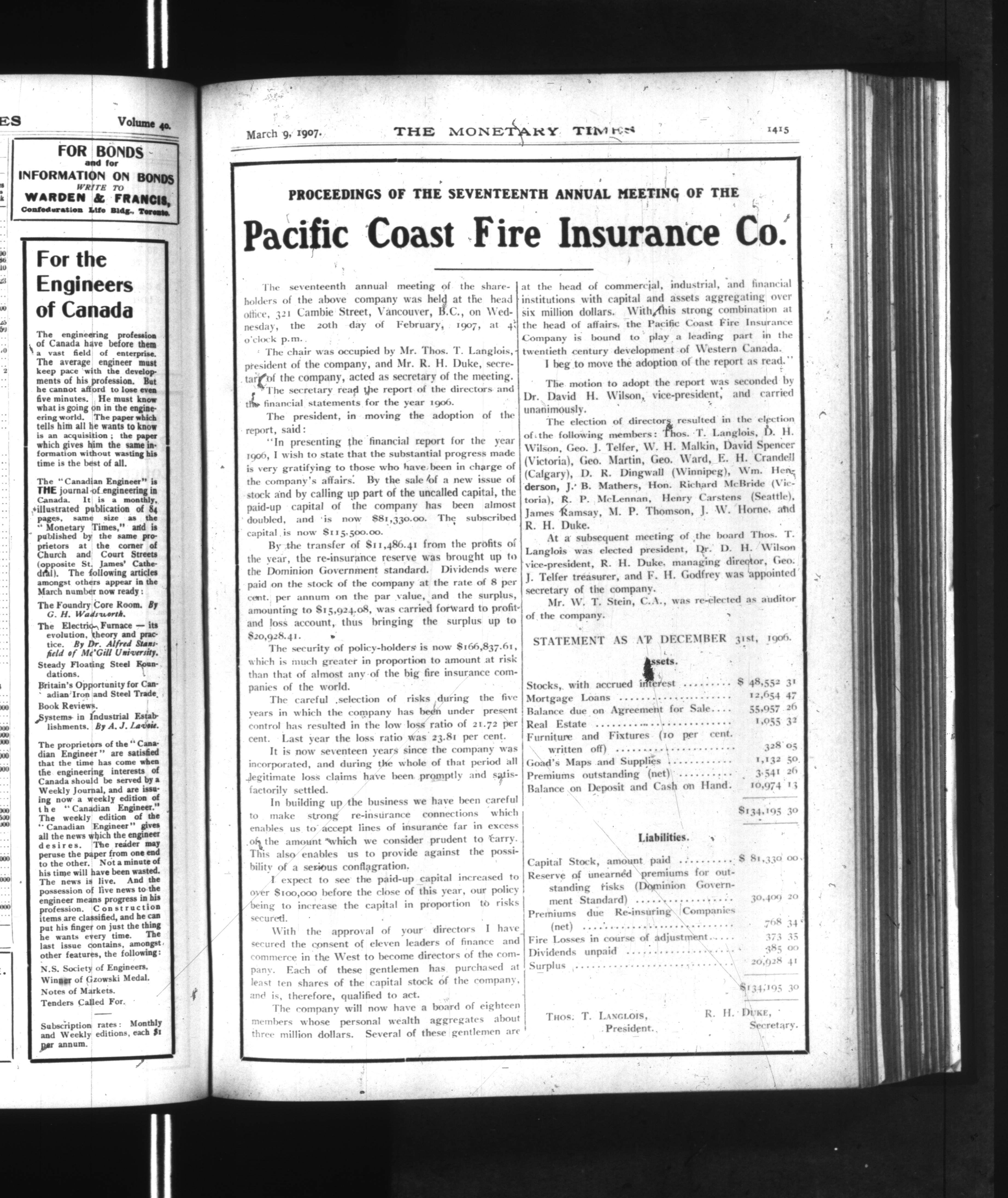 The monetary times, trade review and insurance chronicle : Vol. 40, No. 36 (March 9, 1907)
