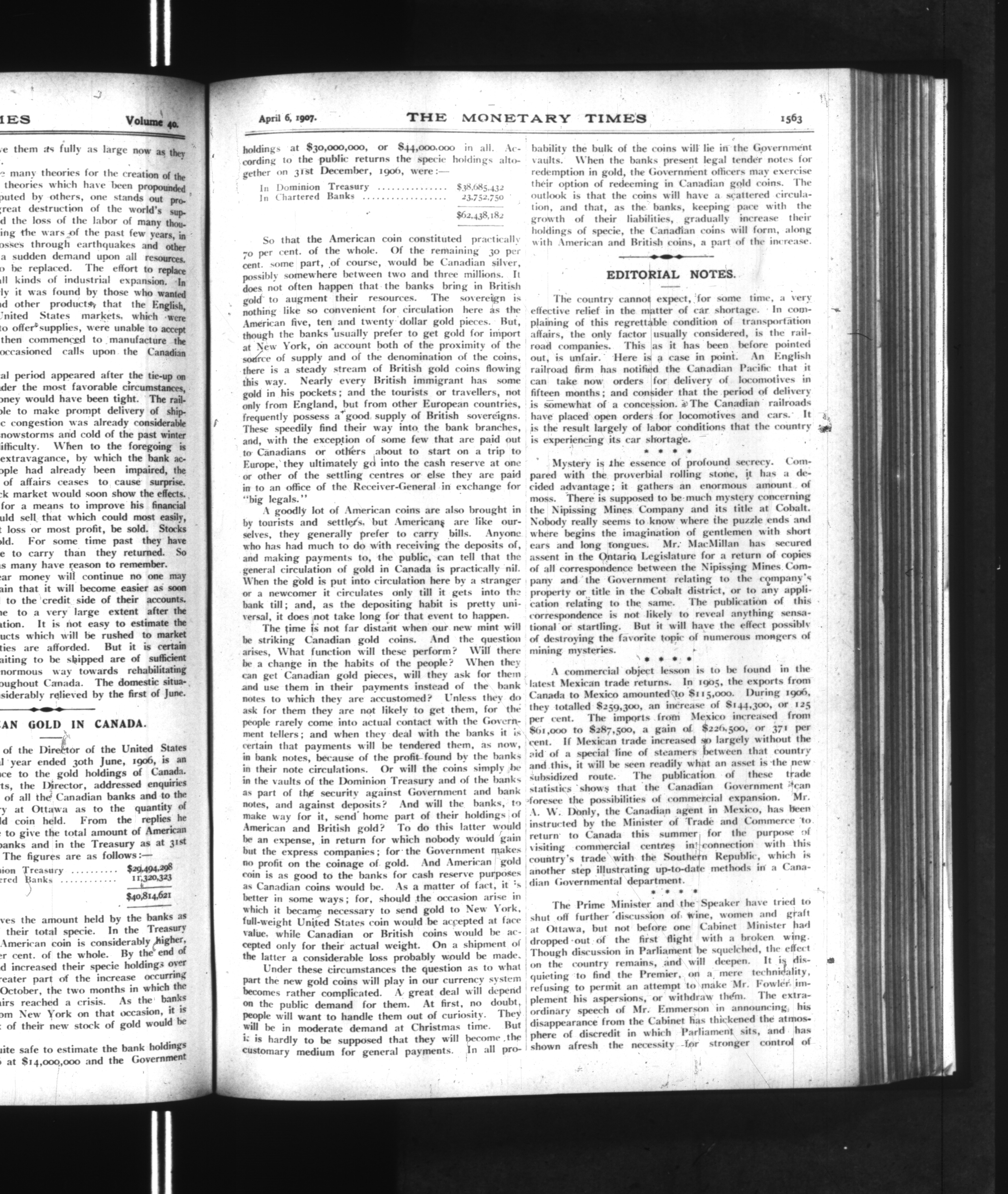 The monetary times, trade review and insurance chronicle : Vol. 40, No. 40 (April 6, 1907)