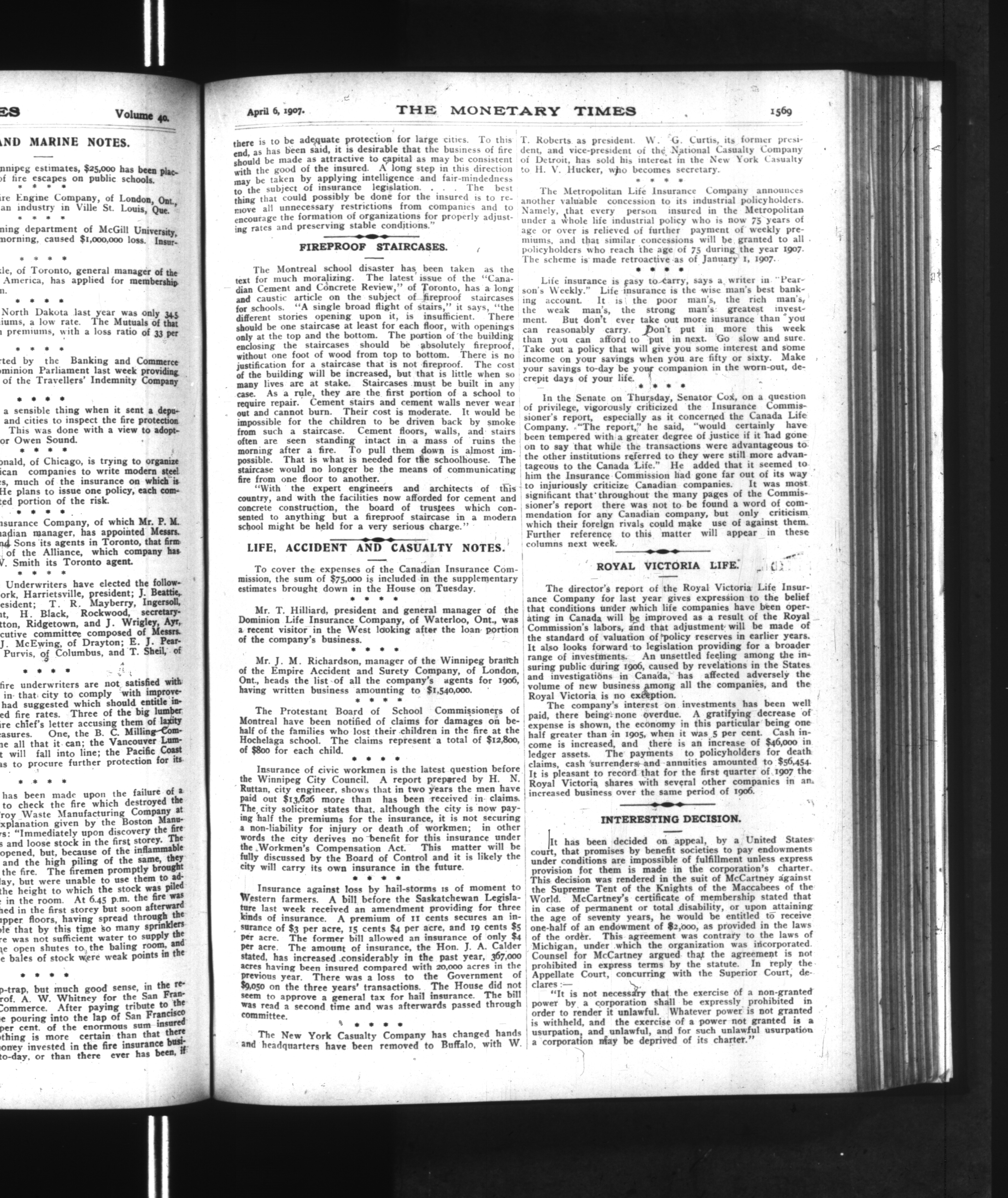 The monetary times, trade review and insurance chronicle : Vol. 40, No. 40 (April 6, 1907)