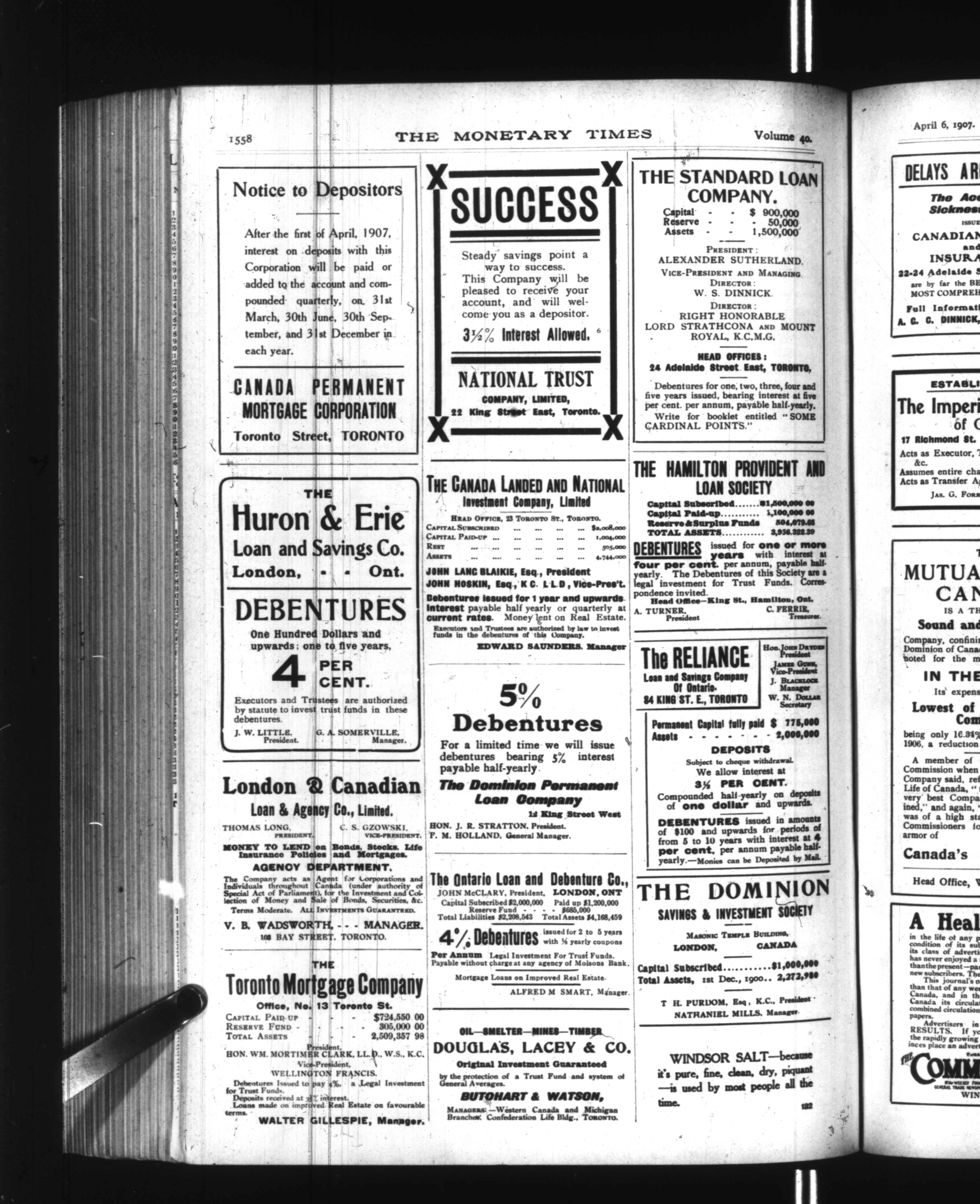 The monetary times, trade review and insurance chronicle : Vol. 40, No. 40 (April 6, 1907)