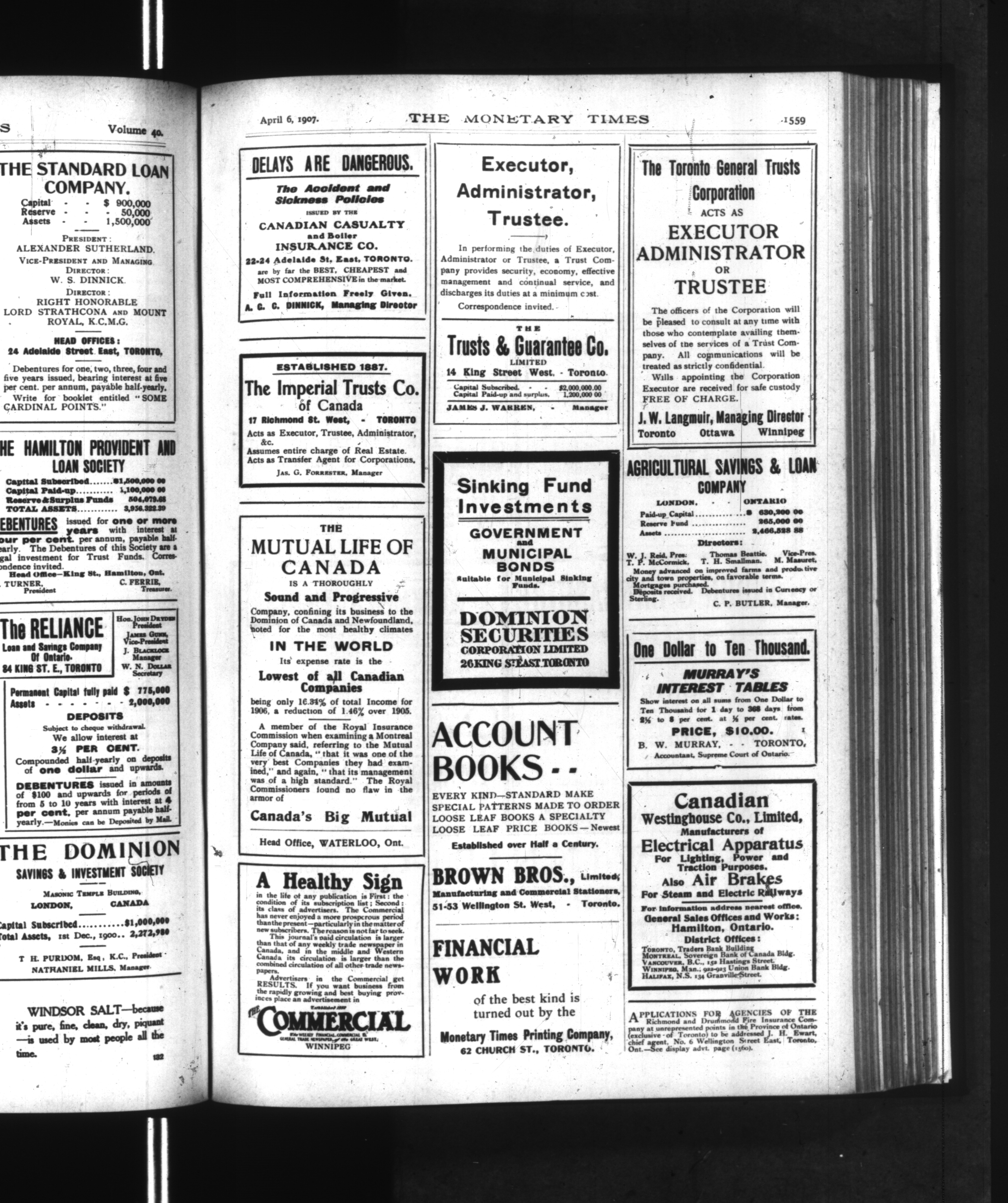 The monetary times, trade review and insurance chronicle : Vol. 40, No. 40 (April 6, 1907)
