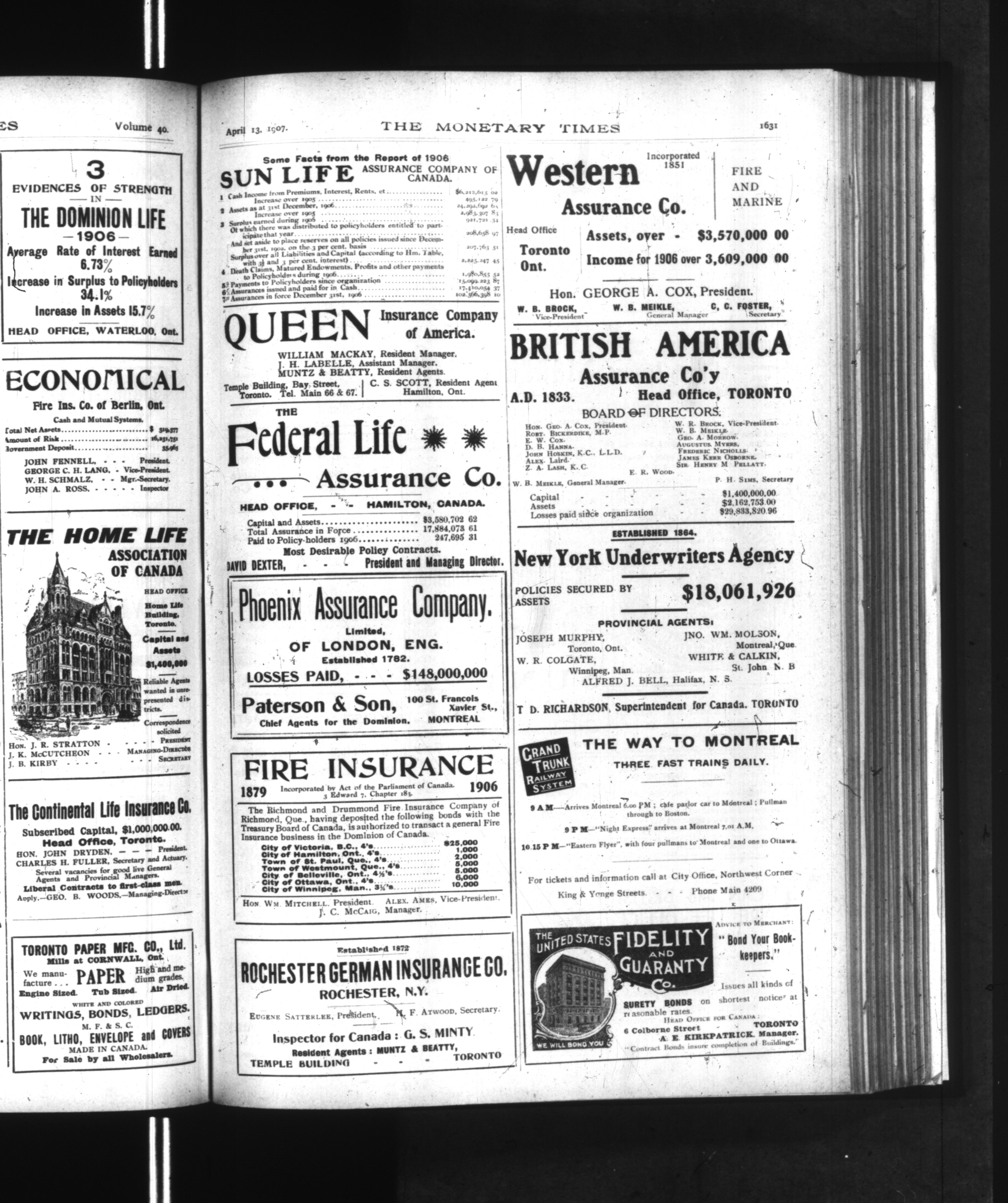 The monetary times, trade review and insurance chronicle : Vol. 40, No. 41 (April 13, 1907)