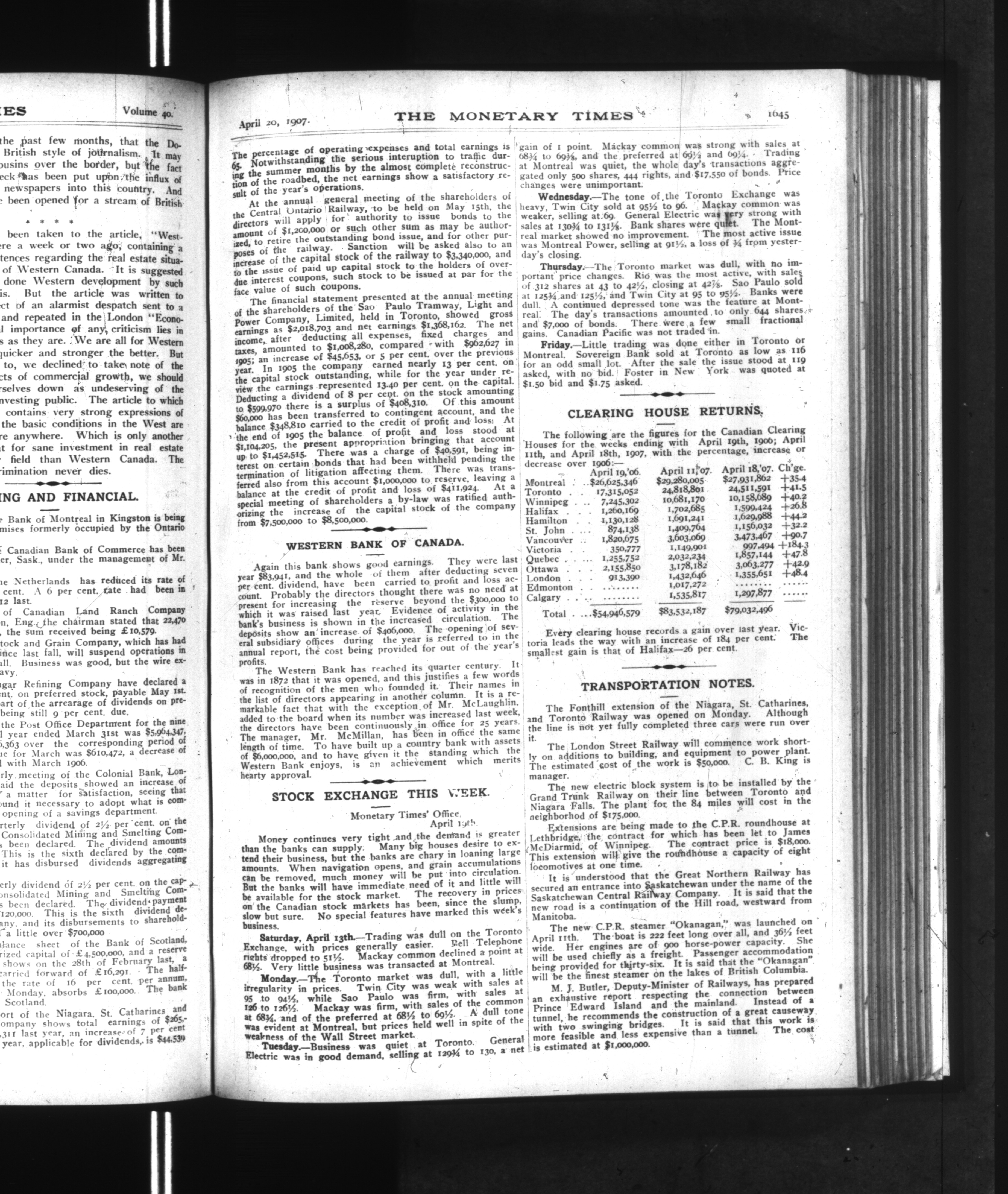The monetary times, trade review and insurance chronicle : Vol. 40, No. 42 (April 20, 1907)