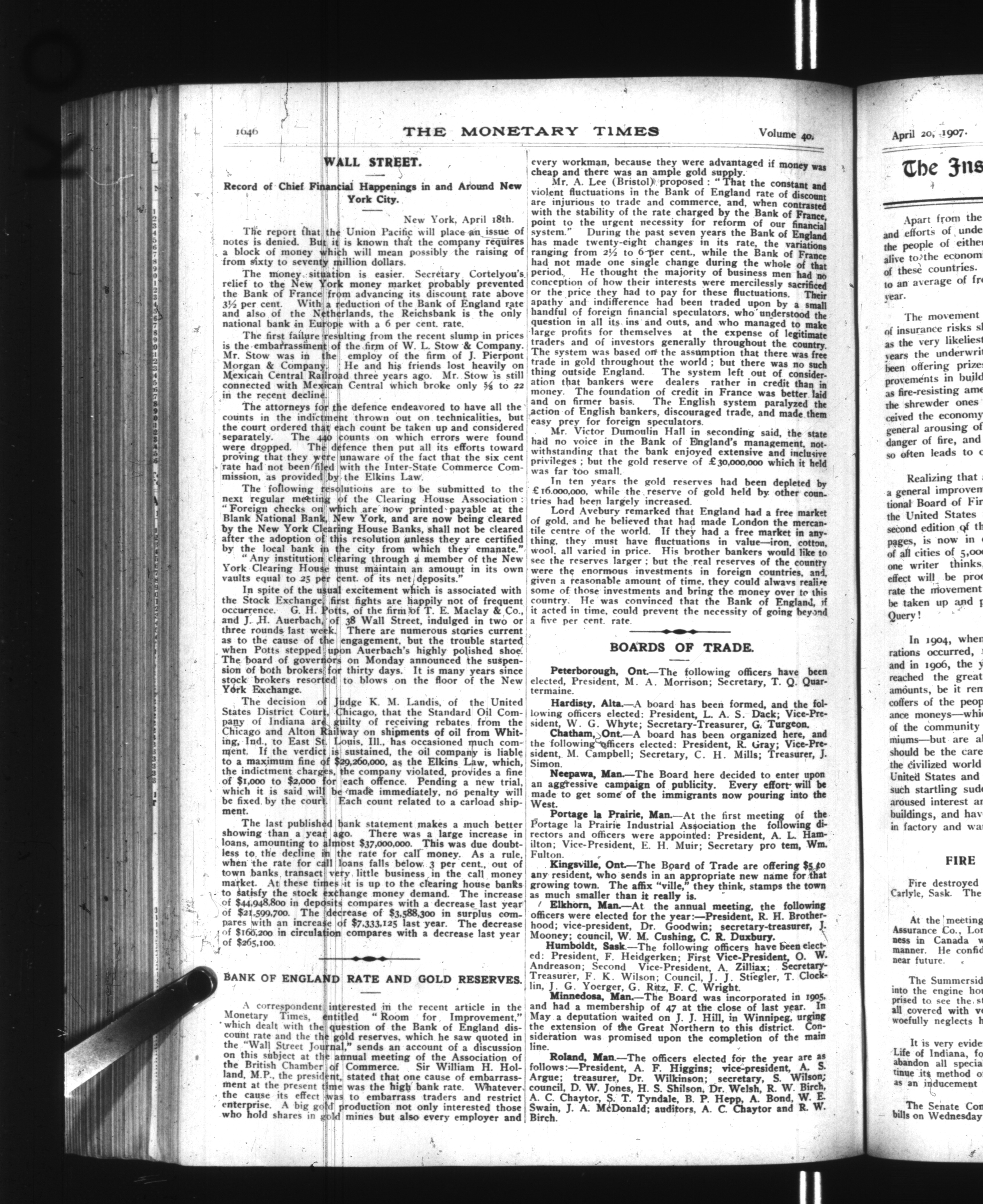 The monetary times, trade review and insurance chronicle : Vol. 40, No. 42 (April 20, 1907)