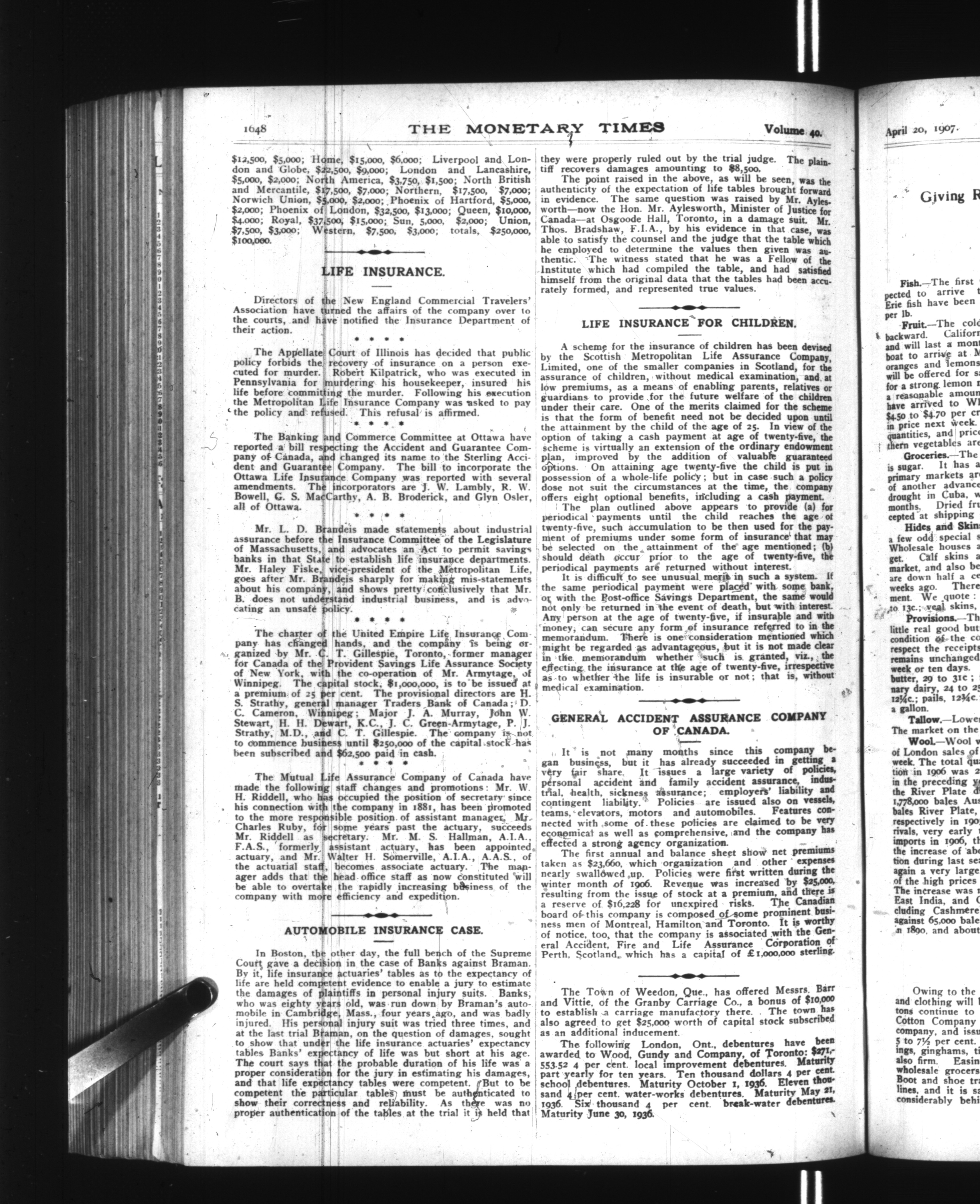 The monetary times, trade review and insurance chronicle : Vol. 40, No. 42 (April 20, 1907)