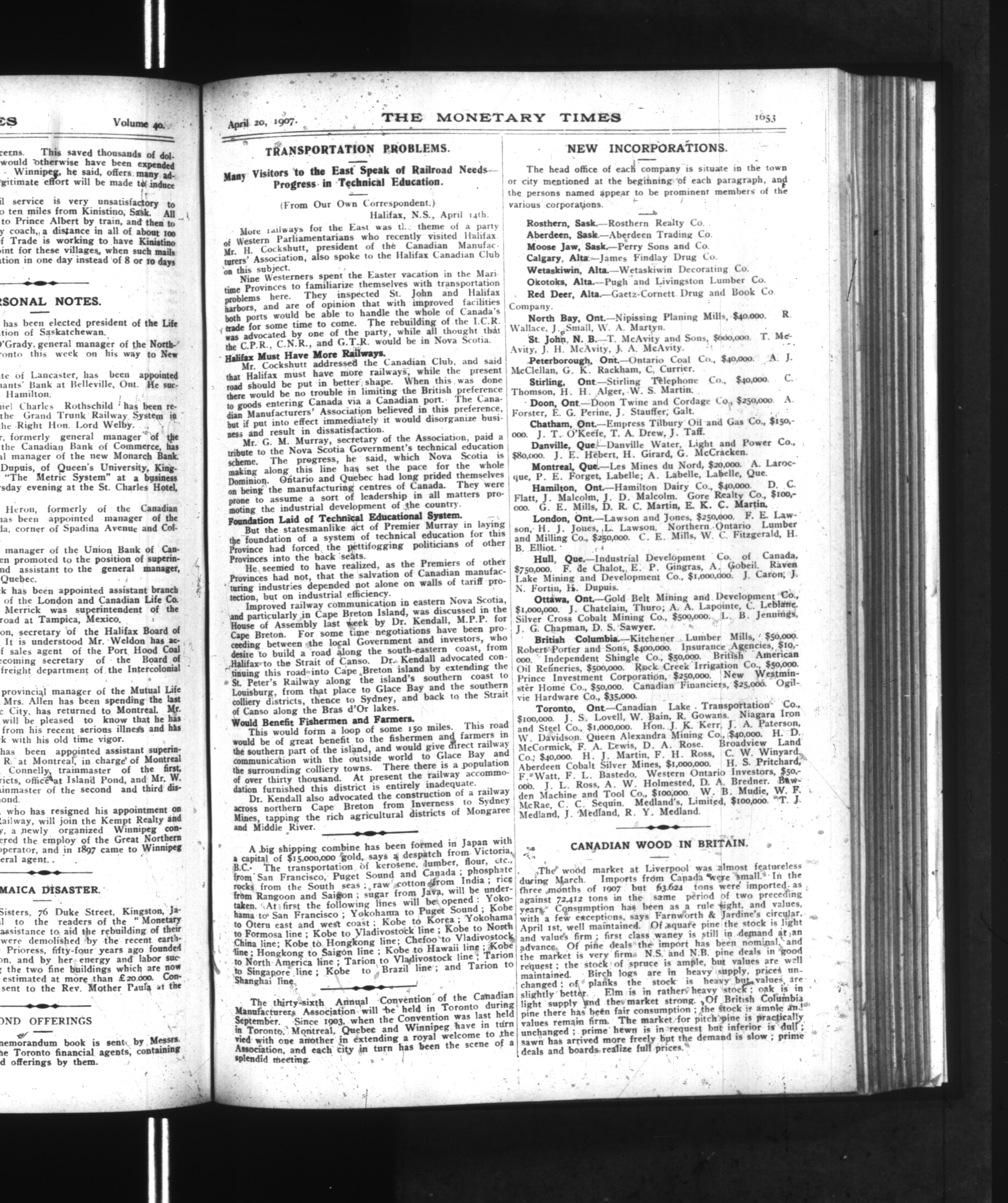 The monetary times, trade review and insurance chronicle : Vol. 40, No. 42 (April 20, 1907)