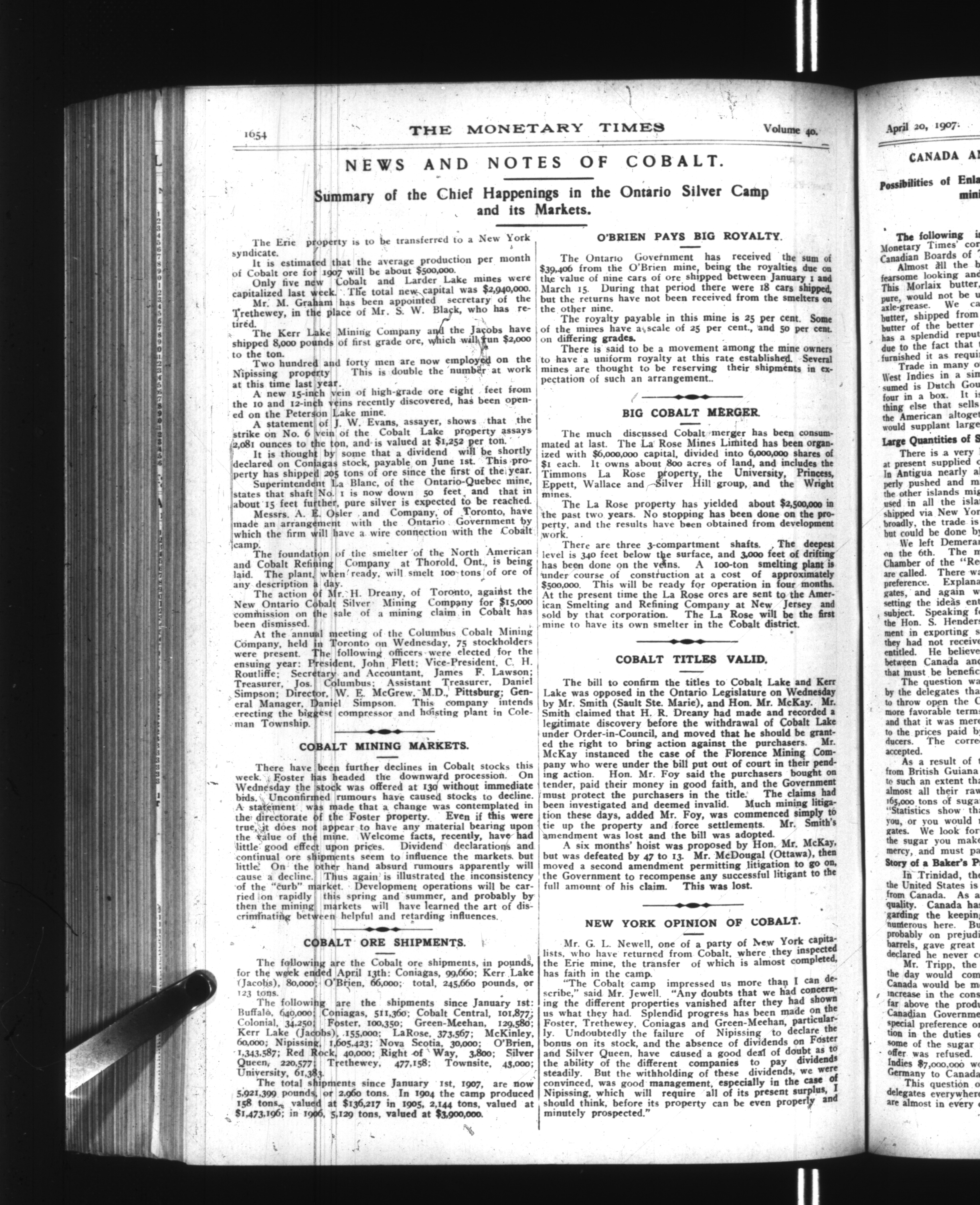 The monetary times, trade review and insurance chronicle : Vol. 40, No. 42 (April 20, 1907)