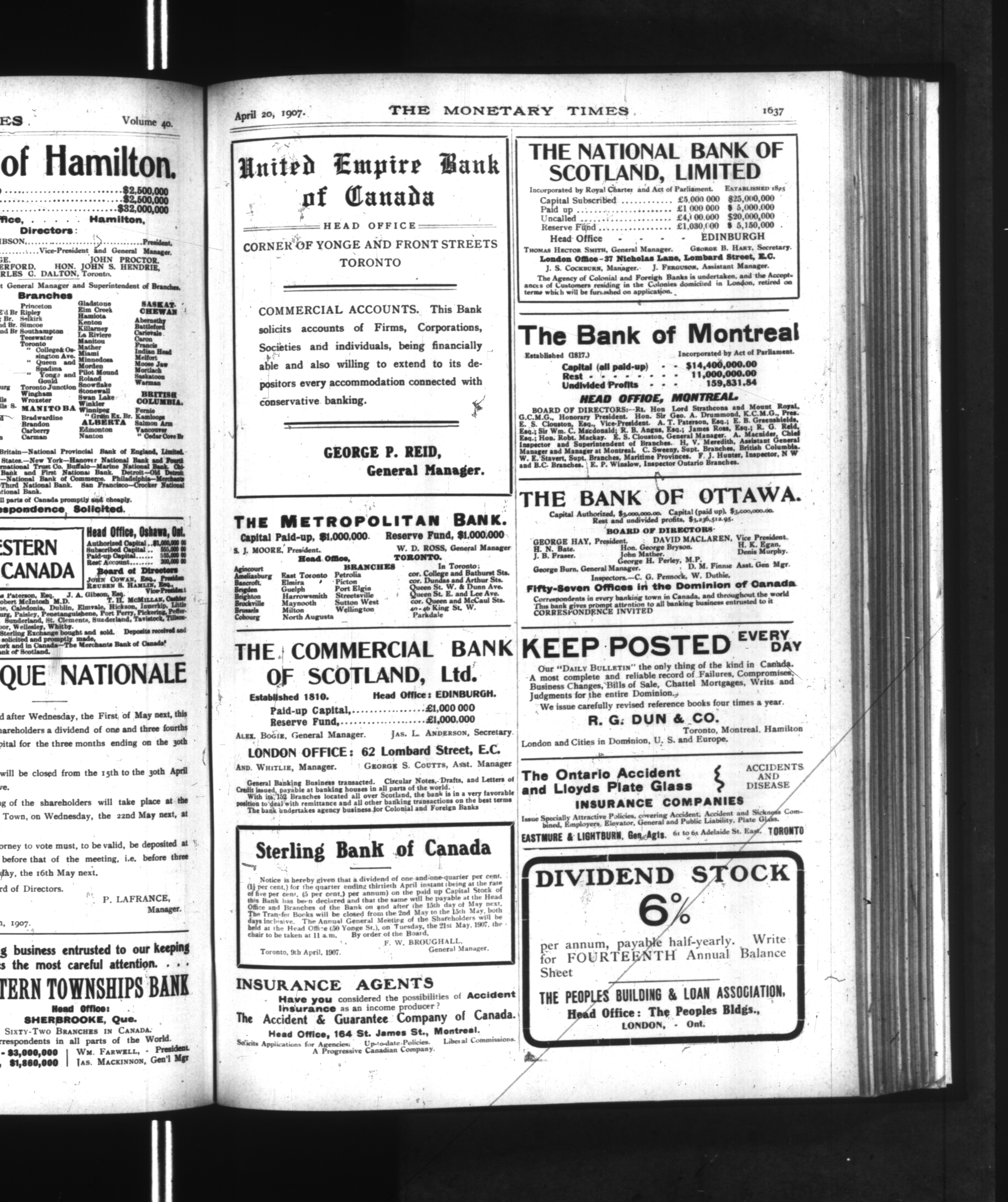 The monetary times, trade review and insurance chronicle : Vol. 40, No. 42 (April 20, 1907)