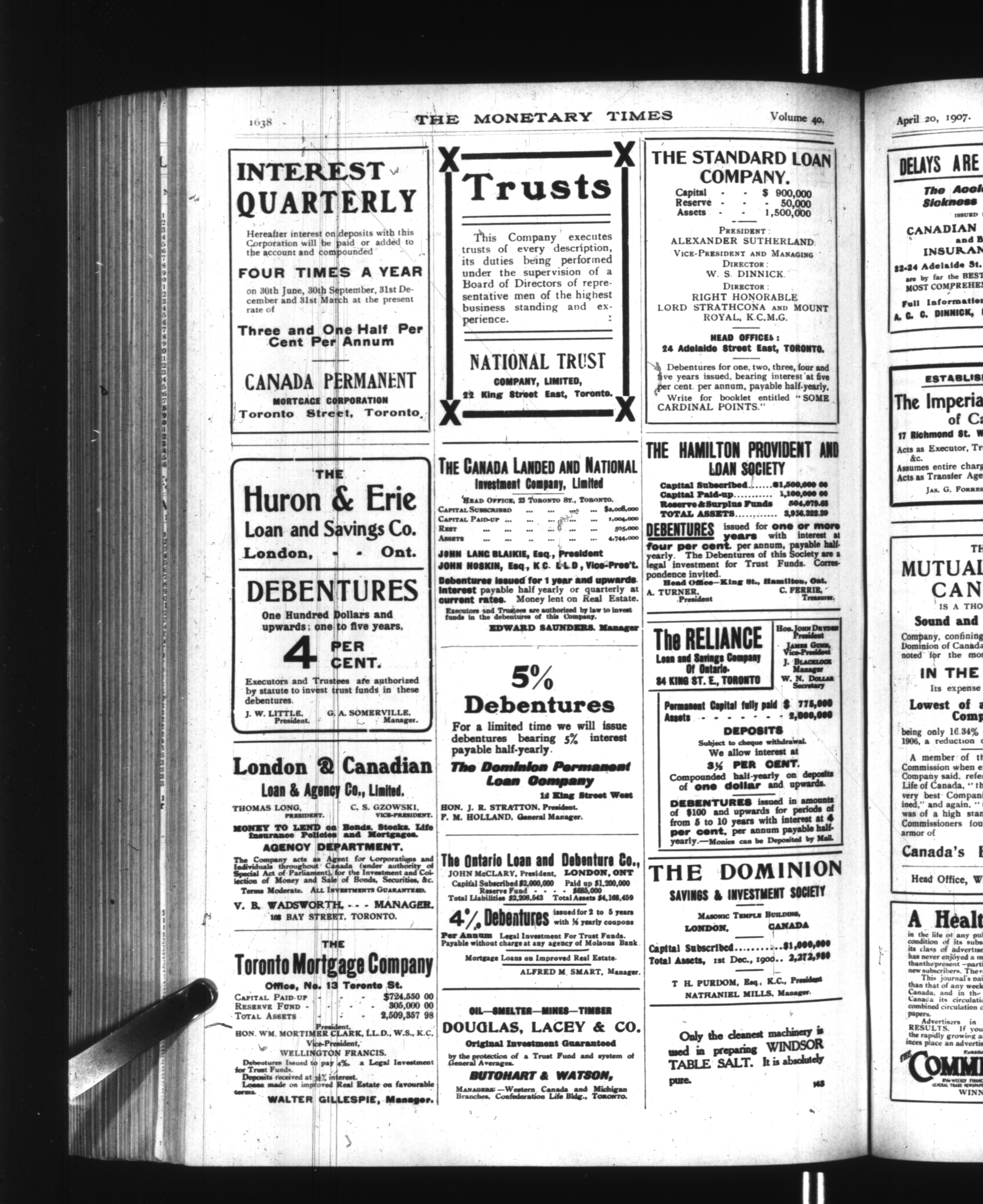The monetary times, trade review and insurance chronicle : Vol. 40, No. 42 (April 20, 1907)