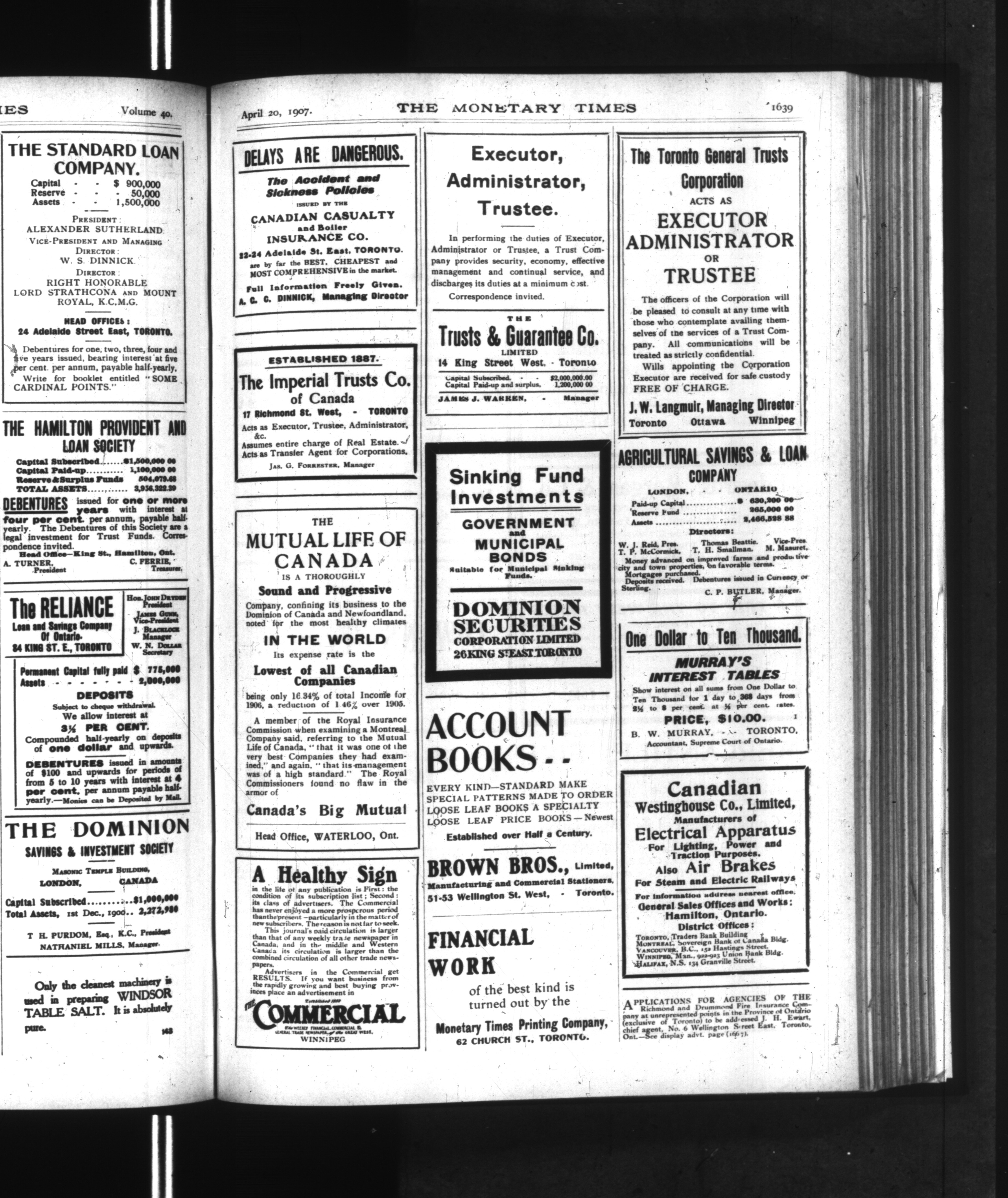 The monetary times, trade review and insurance chronicle : Vol. 40, No. 42 (April 20, 1907)