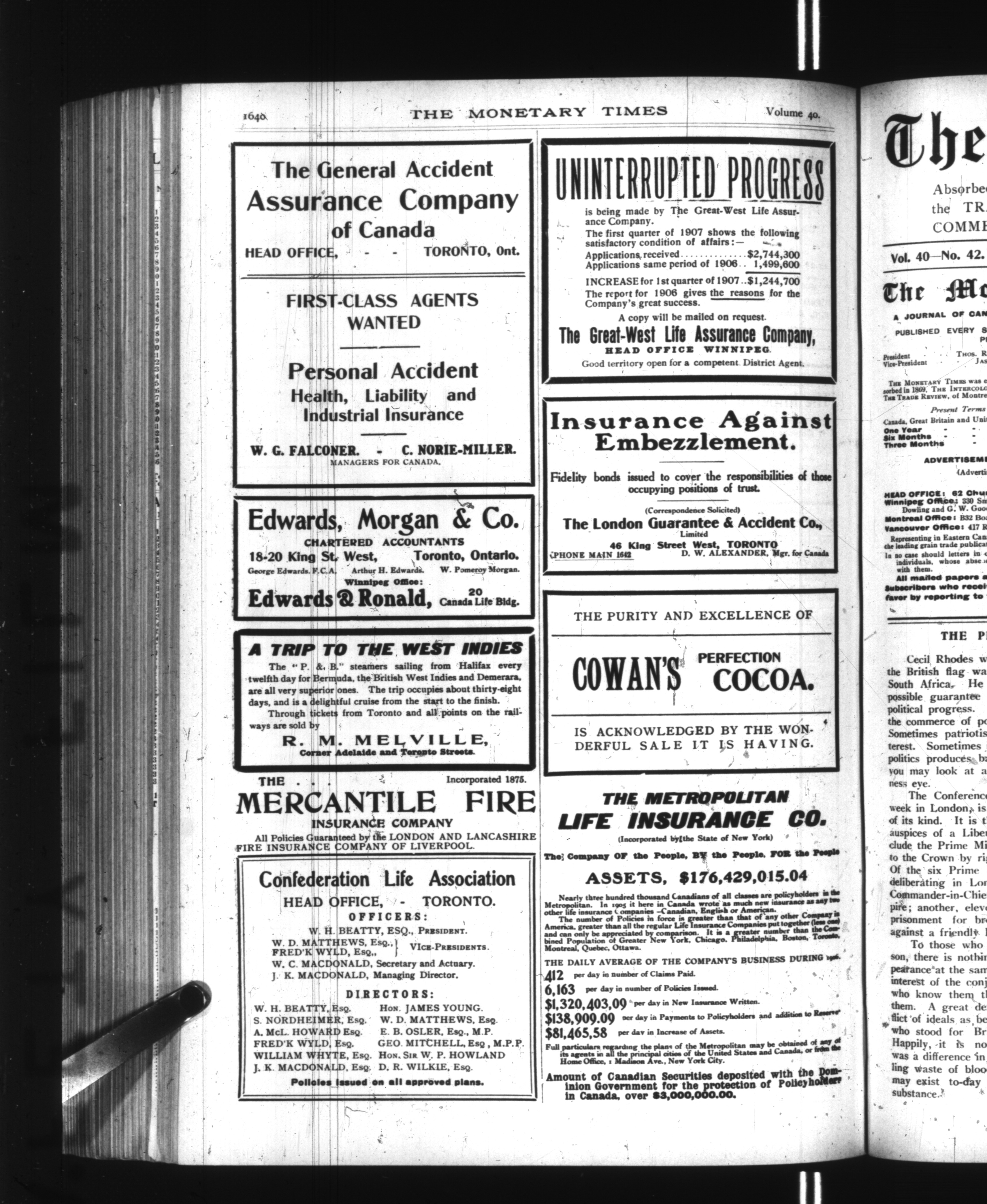 The monetary times, trade review and insurance chronicle : Vol. 40, No. 42 (April 20, 1907)