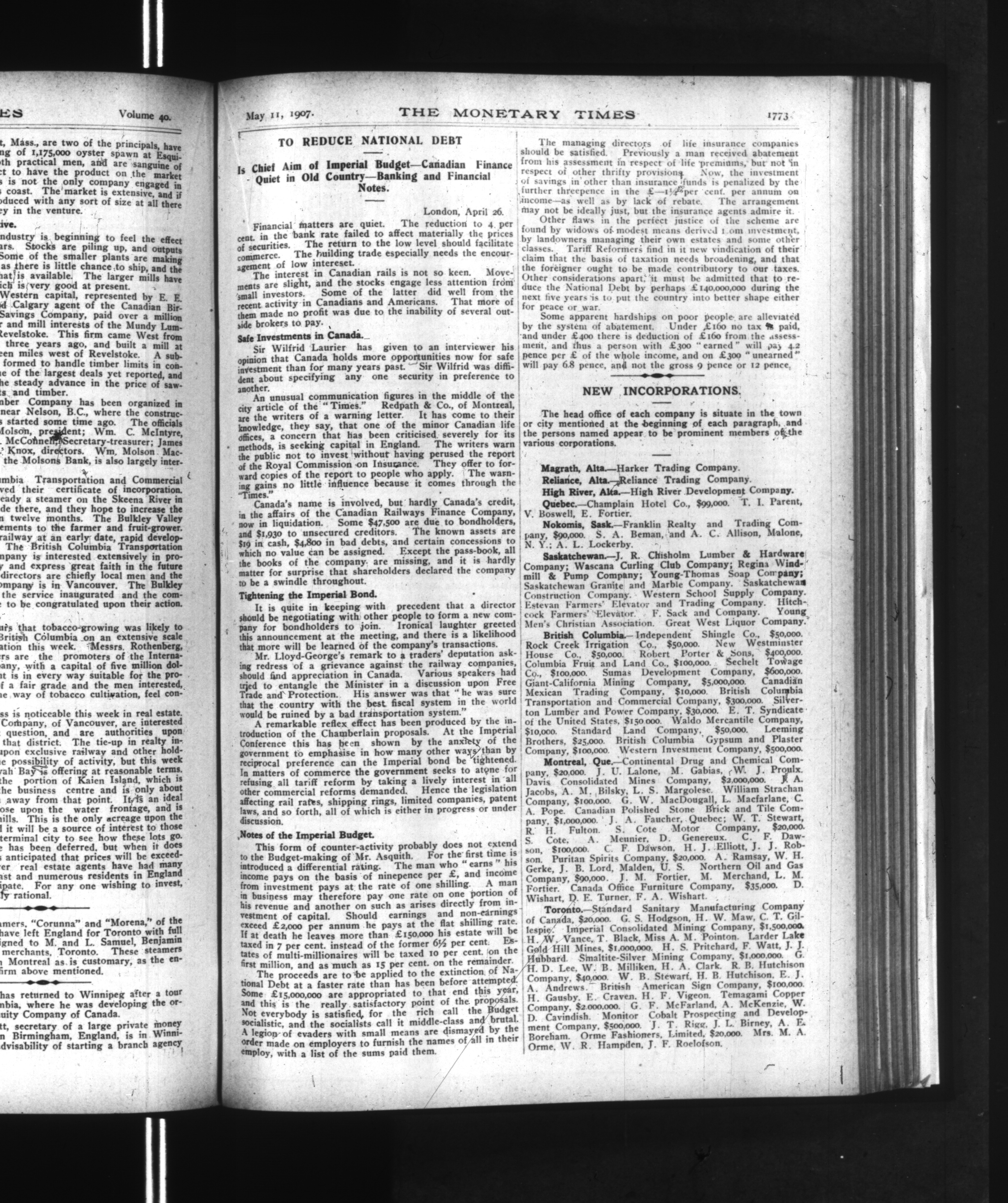 The monetary times, trade review and insurance chronicle : Vol. 40, No. 45 (May 11, 1907)