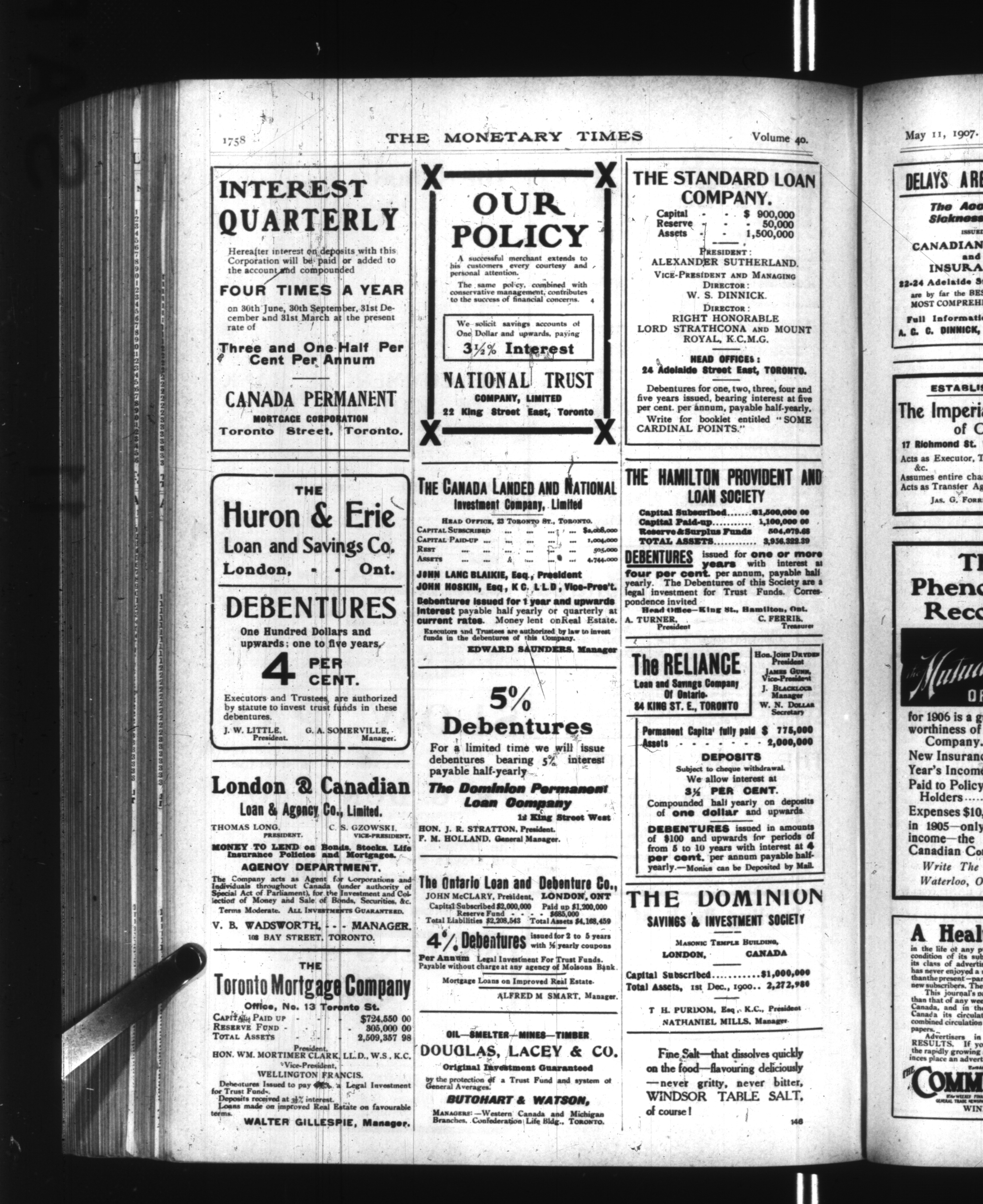 The monetary times, trade review and insurance chronicle : Vol. 40, No. 45 (May 11, 1907)