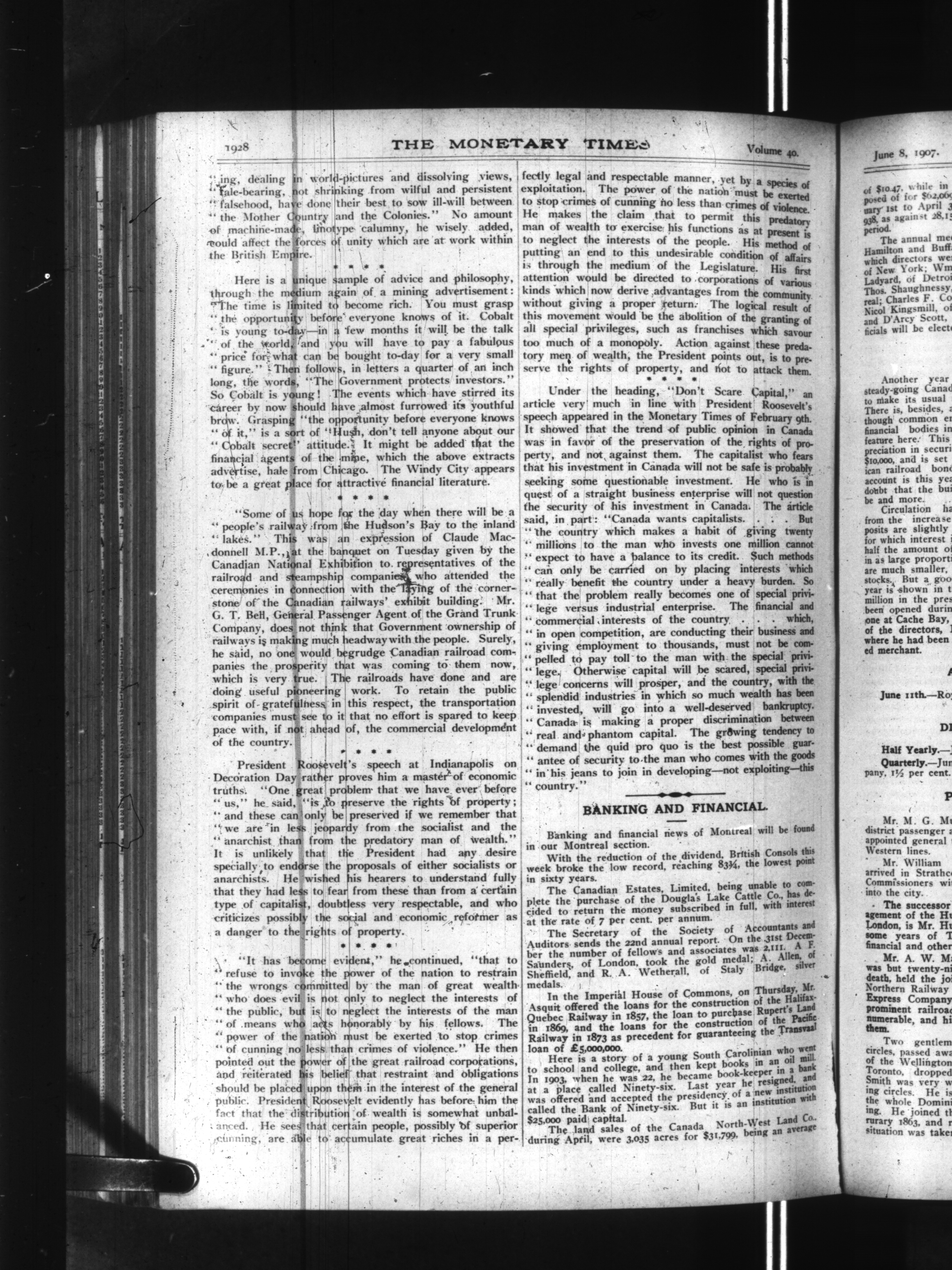 The monetary times, trade review and insurance chronicle : Vol. 40, No. 49 (June 8, 1907)